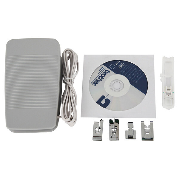 | Комплект поставки | двойная игла; педаль; документация; шпульки; щеточка для чистки; набор игл; дополнительный катушечный стержень; дискообразная отвертка; фиксатор катушки; вспарыватель; набор лапок |