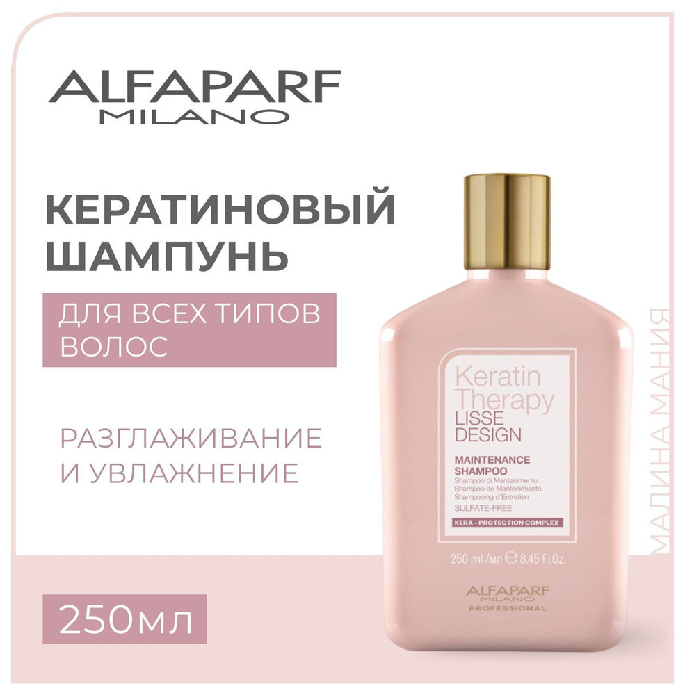 Бессульфатный кератиновый шампунь для гладкости волос Maintenance Shampoo 250 мл Alfaparf Milano (ЭХ99989439196)