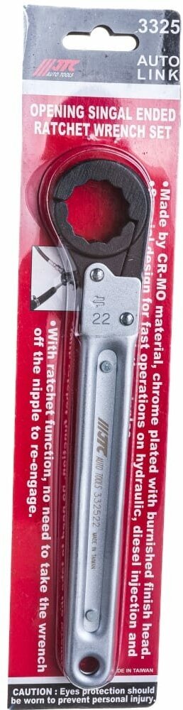 Раскрывающийся ключ с трещоткой JTC-332510 изготовлен из инструментальной стали с хромированной поверхностью и полированной головкой. Конструкция раскрывающейся головки способствует быстрой работе по обслуживанию гидравлических, пневматических и других механизмов автомобиля.