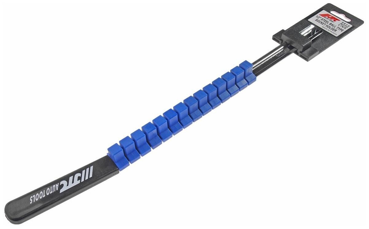 Держатель головок 1/2" (стальная рейка с пластиковой рукояткой, 14 шариковых фиксаторов) длина 445мм JTC /1 JTC-. Шариковый фиксатор обеспечивает надежное хранение головок. Пластиковая рукоятка обеспечивает удобный захват и перемещение планки. Различная цветовая индикация для различных типоразмеров, что позволяет быстро выбирать требуемый размер головок. Поставляется с 14-ю фиксаторами. Размер: 1/2". Длина: 445 мм Цвет: синий. Габаритные размеры: 505/60/25 мм. (Д/Ш/В) Вес: 218 гр.