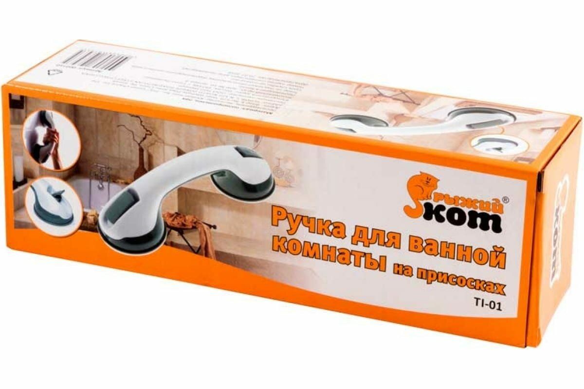 Поручень для ванной Рыжий Кот препятствует скольжению на влажных и гладких поверхностях, удерживает от падений. Подходит семьям с детьми, людям с ограниченными возможностями, пожилым или беременным.