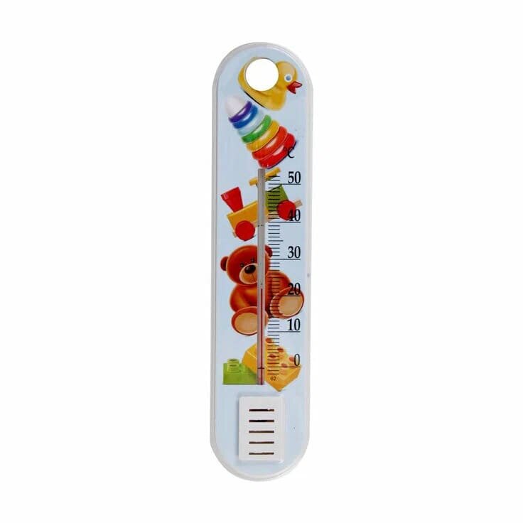 Диапазон температур измерения от 0 до +50°С. Цена деления 1 градус. Точность измерений ± 2 градус. По своему применению не имеет особенных ограничений. Используется в жилых помещениях, в детских и лечебных учреждениях, офисах. Термометр подвешивается к стене, отверстие уже имеется. Основание пластиковое - декорированное.
