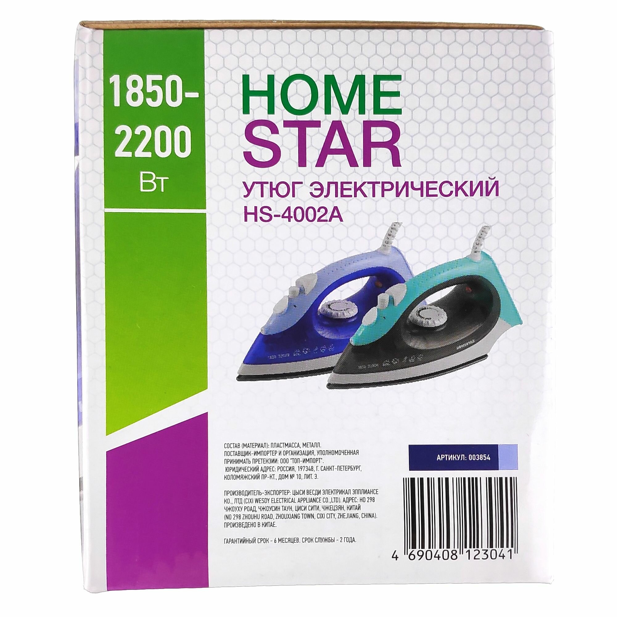 Утюг HOMESTAR HS-4002A, 1850 - 2200 Вт, тефлоновая подошва, серый быстро и безопасно приведёт любую одежду и постельное бельё в порядок. Подошва легко скользит по ткани, разглаживая даже самые непослушные складки. Эргономичная ручка удобно лежит в руке во время глажки. Вы сможете самостоятельно выбрать температурный режим в зависимости от степени деликатности материала.