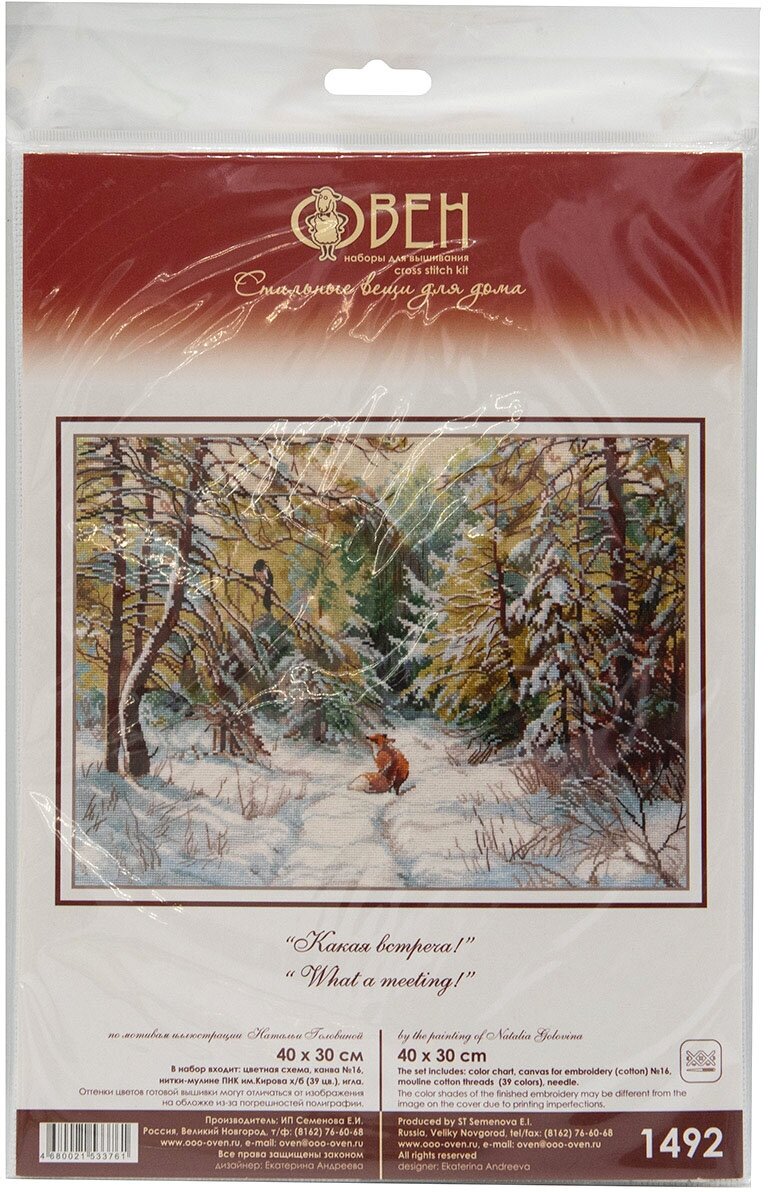 Наборы бренда 'овен' – это прежде всего оригинальные сюжеты, напоминающие живопись акварелью, мелками, маслом. Чтобы вышить такую картину, не потребуются особые навыки – достаточно проявить терпение, усидчивость и аккуратность. Следуйте инструкции, выкладывайте равномерные стежки, и постепенно из-под вашей иглы начнет 'проступать' картина со сложной цветовой гаммой, плавными переходами света и тени.В наборе для вышивки крестом 'Какая встреча!' используется канва Aida 16 каунта – этот материал позволяет вышивать небольшими стежками и прекрасно подходит для схем с подробной детализацией.Совет: если вам не хватает опыта, сделайте разметку канвы, ориентируясь по схеме. Разметка поможет вам быстрее закончить вышивку и избежать возможных ошибок.В наборе: канва Aida 16 ct белая, хлопковое мулине ПНК им. Кирова, игла, схема, инструкция.Количество цветов: 39.