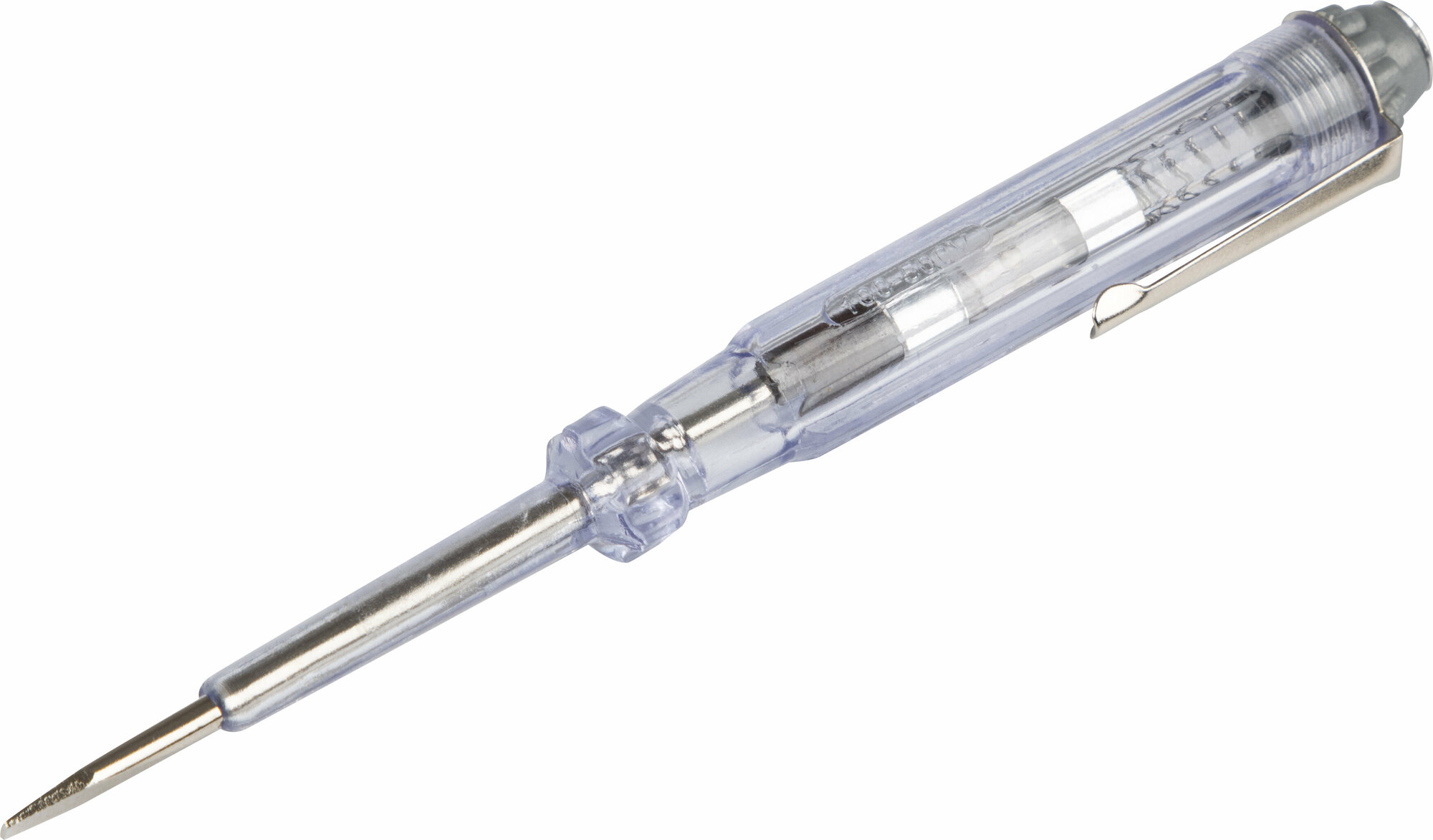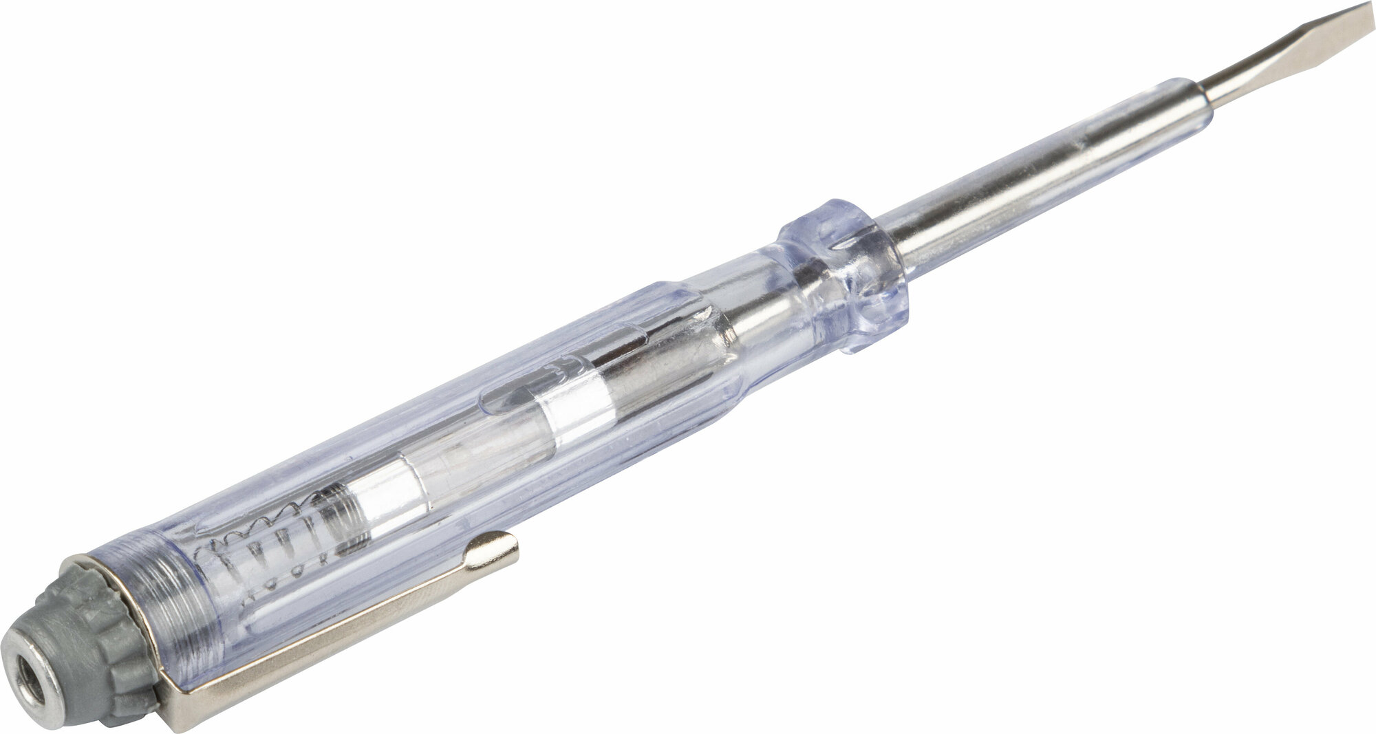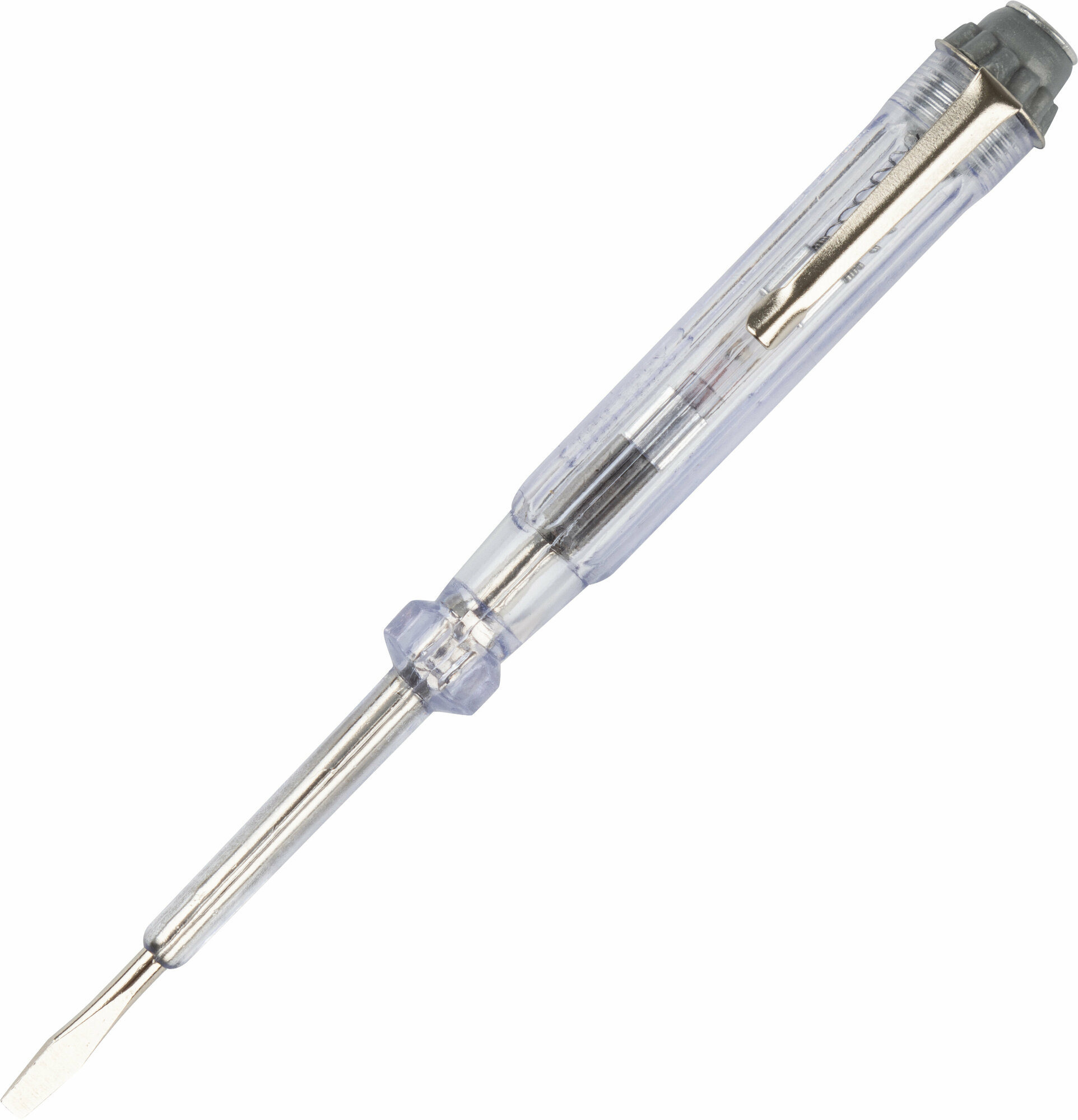 Отвертка-тестер напряжения с корпусом из прозрачного пластика. Устройство помогает найти повреждения в электрических цепях переменного тока. Используется для определения наличия напряжения в бытовых электрических сетях. Материал полотна: инструментальная сталь; Материал ручки: пластик; Длина: 140 мм; Тип наконечника: прямой шлиц; Напряжение в сети: 110 - 250 В.