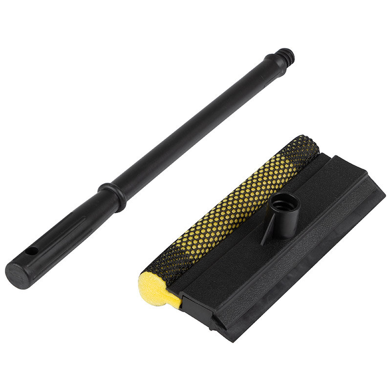 Удобное приспособление для мытья окон. Снабжен скребком из качественной резины, не твердеющей при низких температурах, и губкой из плотного поролона, покрытого синтетической сеткой, стойкой к истиранию. Разборная конструкция.