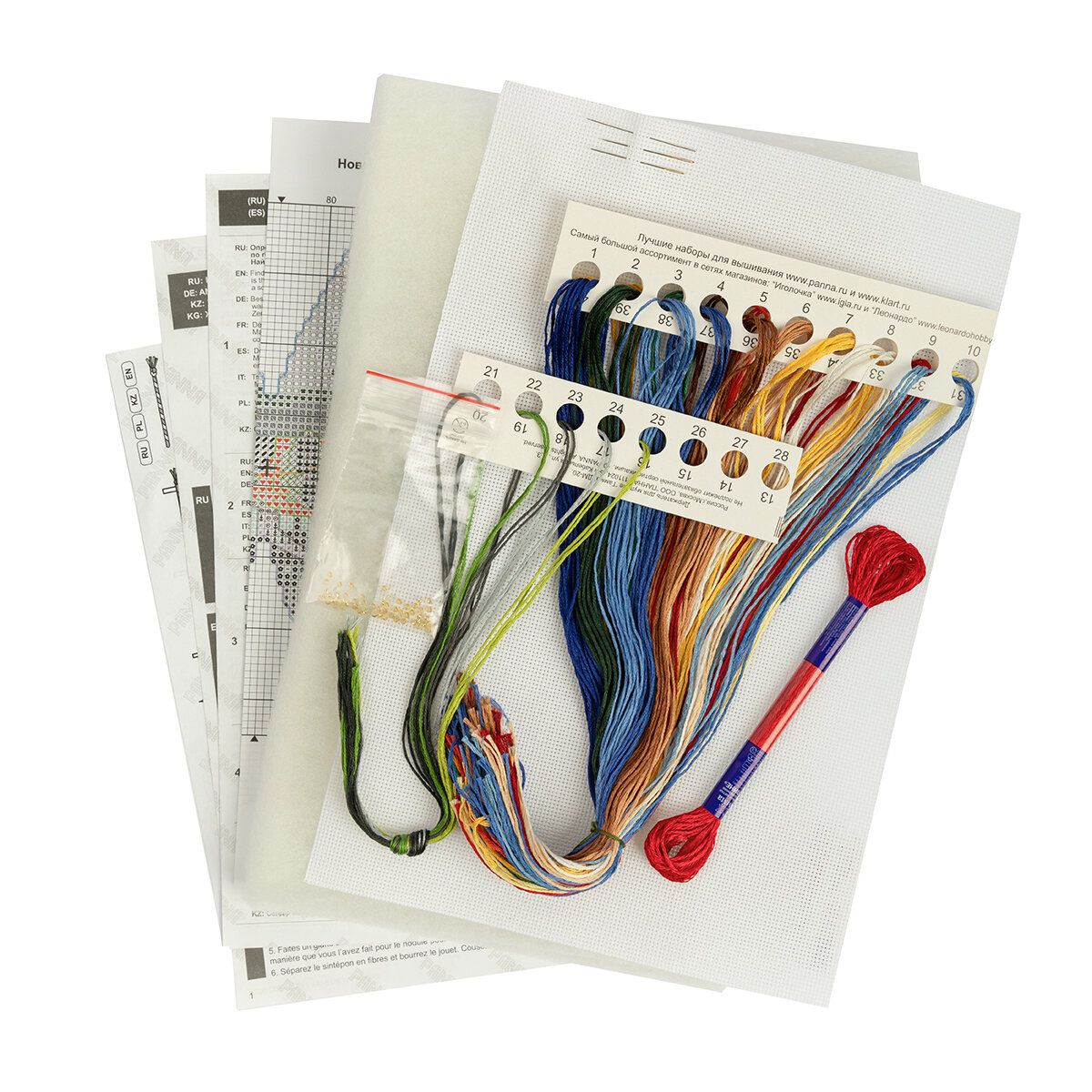 | В набор входит | канва Aida 18 белого цвета, мулине, игла, цветная символьная схема, инструкция, синтепон, бисер |