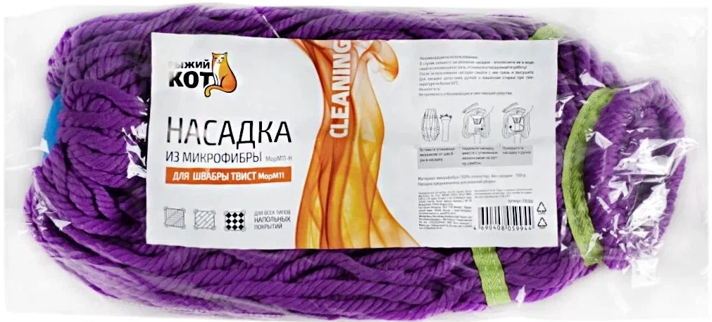 Сменная насадка из микрофибры Рыжий кот для швабры ТВИСТ 310368 подходит для универсальных швабр с типом отжима твист. Форма насадки помогает убираться в труднодоступных местах. Подходит для уборки всех типов твердых поверхностей. Микрофибра притягивает и удерживает частицы пыли благодаря антистатическим свойствам.