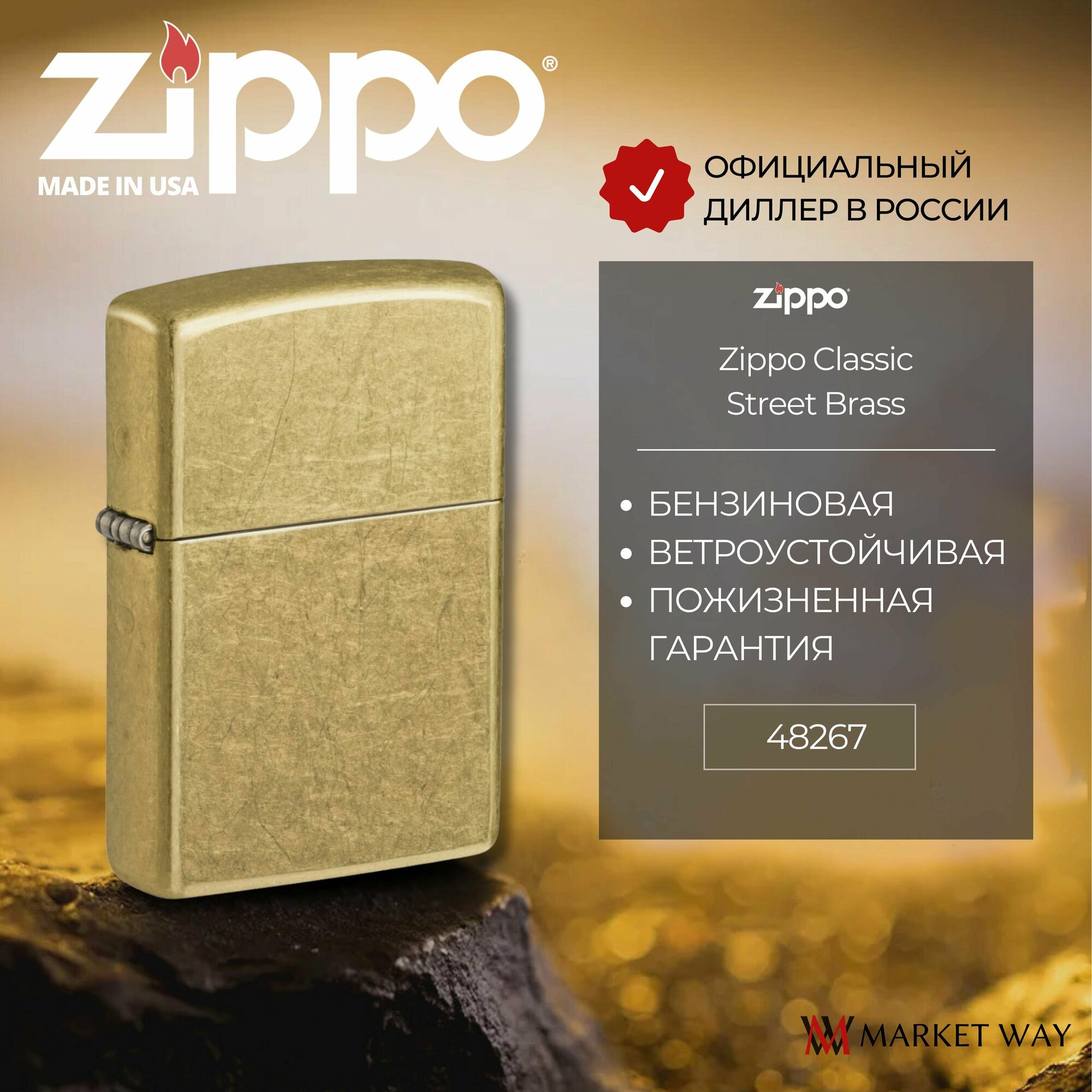 Модели зажигалок Zippo из серии Classic выпускаются компанией из года в год, практически без существенных изменений в дизайне и конструкции. Zippo № имеет оригинальный матовый корпус, напоминающий по фактуре антикварную медь. И это сделано неслучайно, ведь изысканная элегантность классических хромированных поверхностей никогда не перестает быть модной. Такая продукция не подвластна течению времени, а только становиться еще желанней и ценней, даже спустя десятилетия. К тому же, гарантированная высокая надежность и классический стиль, а не стоимость зажигалки Zippo, всегда будут теми особенностями, которые характеризуют подлинность Zippo. Наилучшая бензиновая зажигалка Zippo № станет неотъемлемым и любимым аксессуаром ее владельца, так как традиционно означает упорство, твердость и призыв к действию. Коллекция Zippo зажигалок этой серии выполнена из крепкой стали, а неоднократная заправка позволит вам эксплуатировать продукцию Zippo почти вечно без серьезных поломок. Практически 75 лет тому назад благодаря гениальности и феноменальности создателей Zippo был выпущен шедевр изящности и практичности, который стал бессменным атрибутом неординарных людей, таких как доблестные военные, мужественные путешественники и дерзкие романтики.