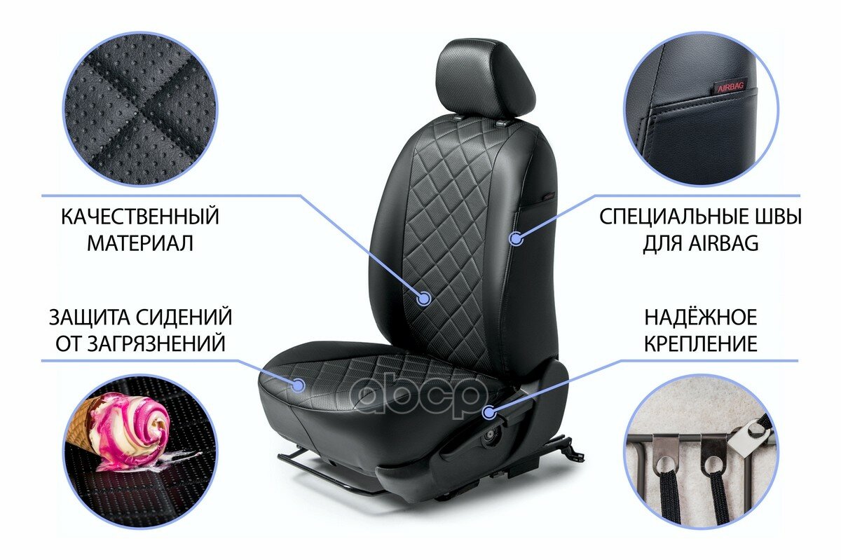 - имеют специальный шов в передних чехлах, который не мешает срабатыванию подушки безопасности;