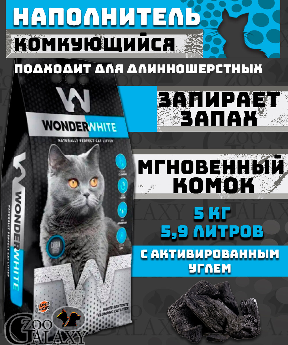 Наполнитель Wonder White Carbon Effect c активированным углем для длинношерстных комкующийся бентонит 5кг