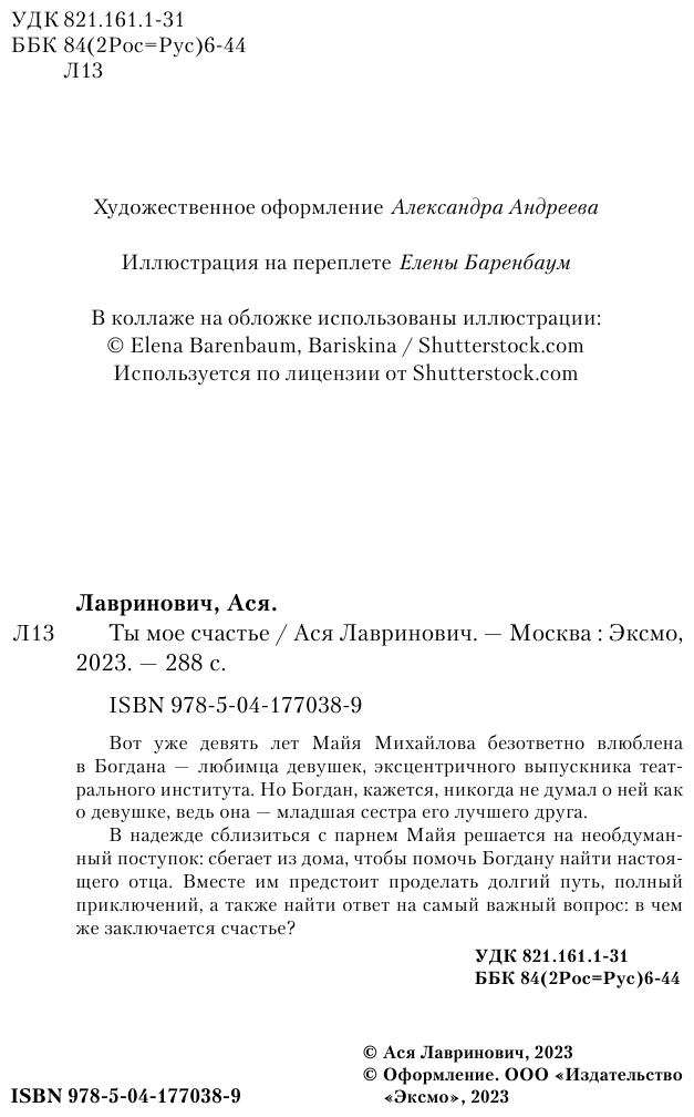 Книга: Ты мое счастье (Ася Лавринович); Эксмо, Like Book, Редакция 1, 2024