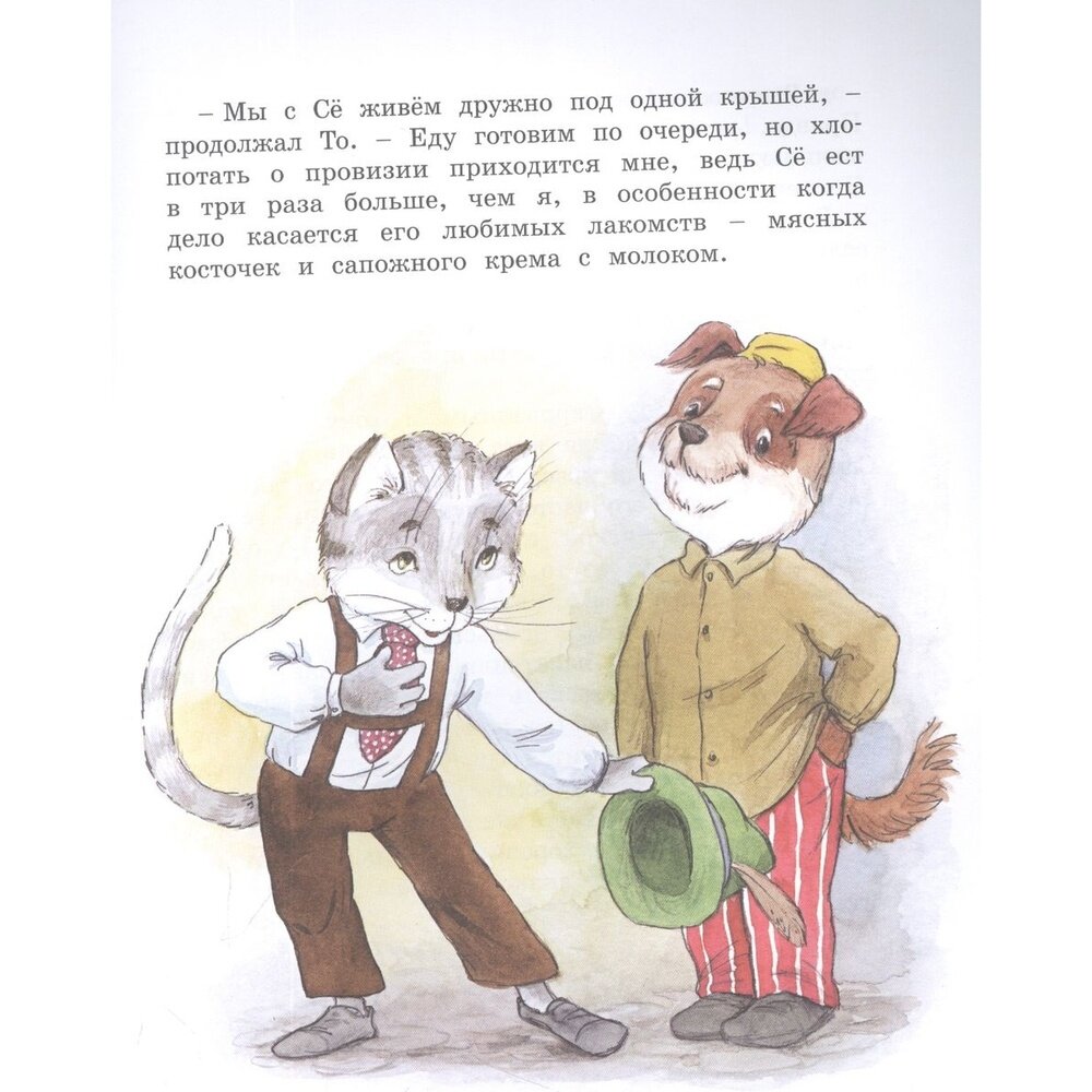 «То и Сё в городе Небось» – ещё одна добрая и весёлая сказка Яна Экхольма, в которой рассказывается о том, как в сказочном городе, куда можно доехать на синем игрушечном автомобиле, жили разные звери и птицы, а заводилами у них были проказники То и Сё. То да Сё, кот и пёс, – закадычные друзья, хотя, как известно, коты и собаки редко уживаются друг с другом. Но в удивительном городе Небось случаются и не такие чудеса. Там, например, некоторые коровы дают не только молоко, но и лимонад и даже какао со сливками… Словом, вас ждёт встреча с новыми героями и необыкновенные приключения!