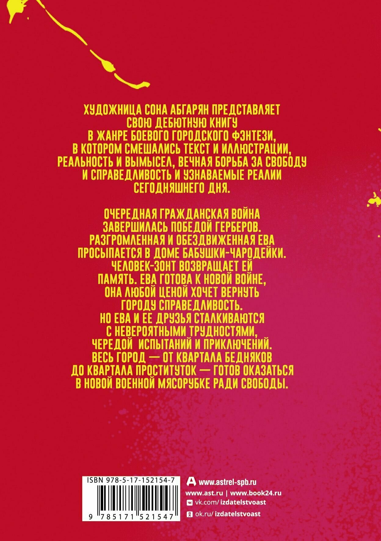 Художница Сона Абгарян представляет свою дебютную книгу в жанре боевого городского фэнтези, в котором смешались текст и иллюстрации, реальность и вымысел, вечная борьба за свободу и справедливость и узнаваемые реалии сегодняшнего дня.