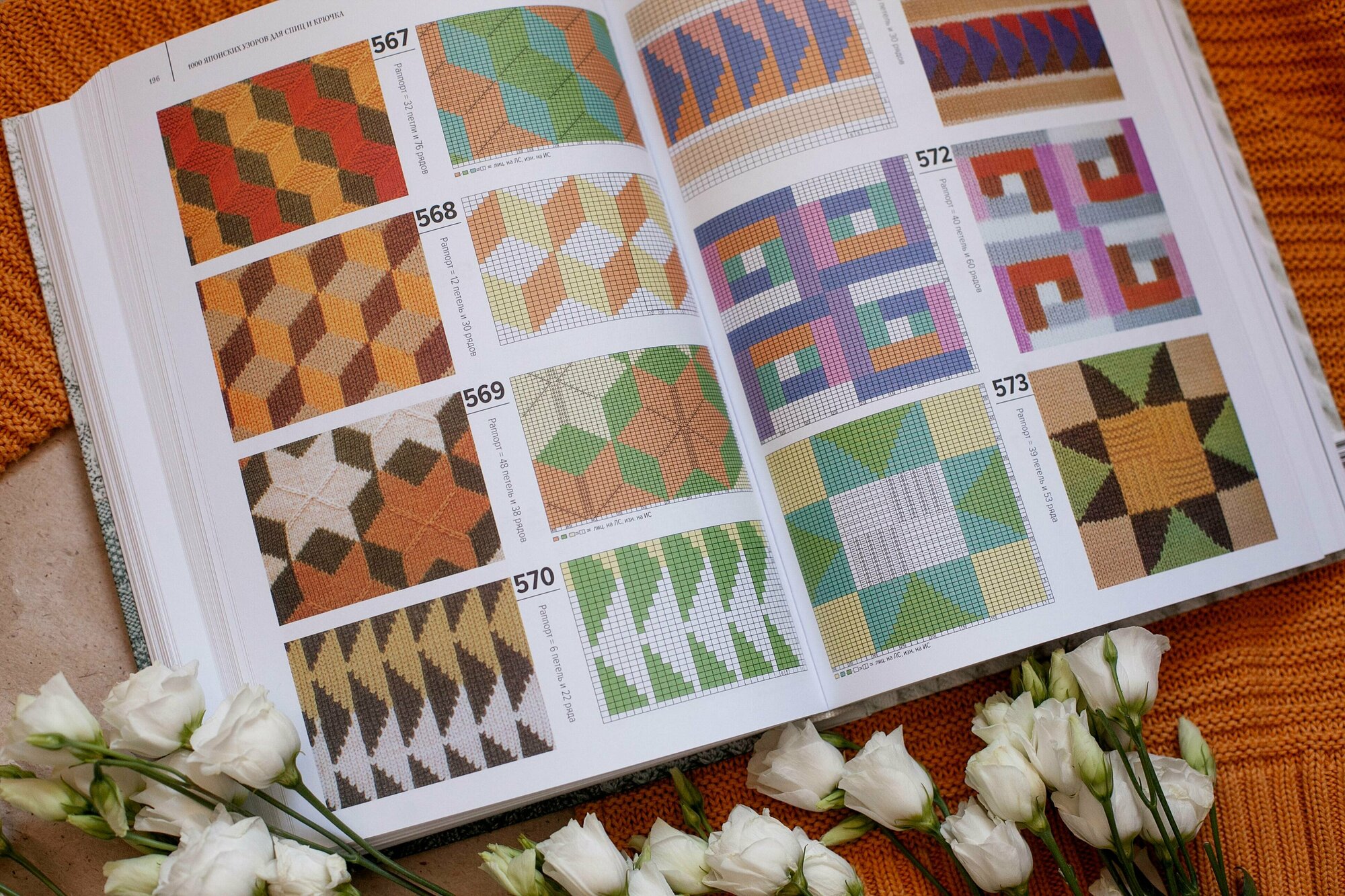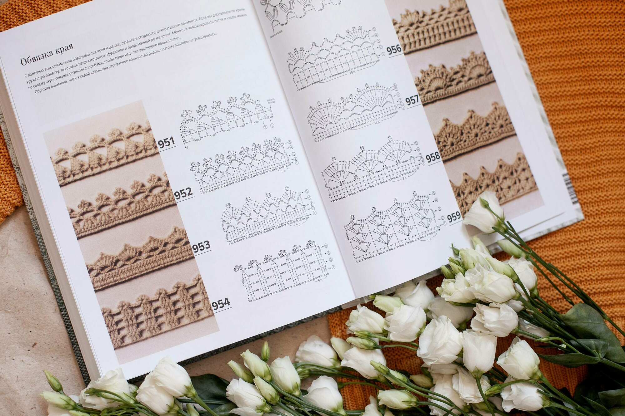Вязание — волшебное занятие. Одна и та же вязаная модель может выглядеть совершенно по-разному в зависимости от цвета, узора и материалов. В этой коллекции из 1000 схем для вязания спицами и крючком узоры представлены в виде таблиц с условными обозначениями. В схемах для вязания на спицах каждой клеточке соответствует одна петля. Рядом с каждой таблицей помещено фото вязаного полотна, чтобы вам было легче соотносить значки в таблице с готовым узором.
