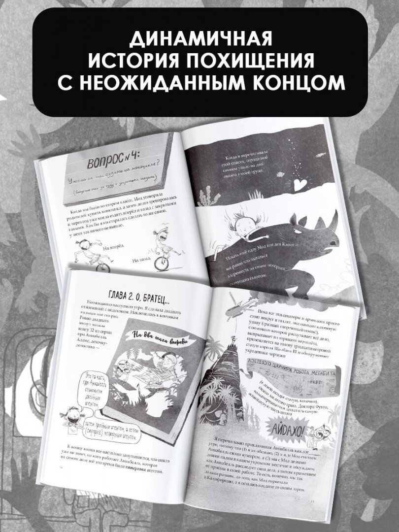 Купила дочке, заинтересовавшись необычным оформлением и подачей. Книга что-то среднее между обычным рассказом и комиксом, и от этого листать ее было интересно даже мне. Плюсом отметила количество разной полезной информации и интересных фактов в сносках и по тексту. Дочка читает сама и прочитала книгу довольно быстро, втянувшись в сюжет и рассматривая иллюстрации. Думаю это отличный детектив для детей, с интересной подачей и познавательным аспектом.