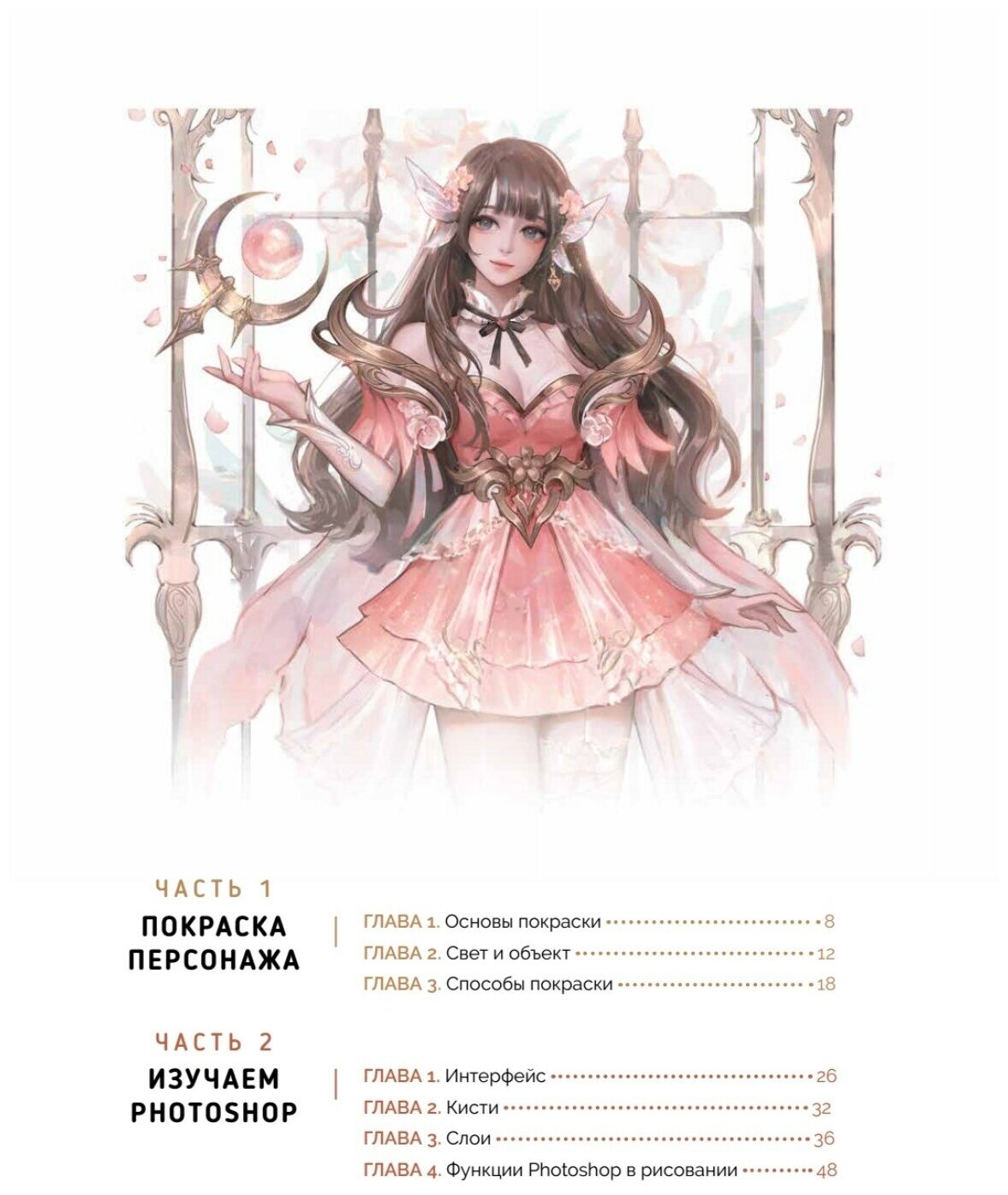Сложно представить более подробную инструкцию для начинающих. И даже если вы знакомы с интерфейсом приложения - книга все равно будет полезна. Помимо самой программы Photoshop, здесь рассказывают и про этапы рисунка, и про светотень и сама художница делиться своими лайфхаками и наработками. Если вы до этого вообще не знакомились с приложением - то книга проведет вас за ручку по базовым функциям.