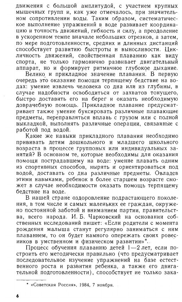 В этой книге собран оригинальный и добротный методический материал по обучению плаванью детей в возрасте 1-2 лет в домашних ваннах, в возрасте 3-6 лет в детских садах и абонементных группах стационарных бассейнов.Материал насыщен методическими рекомендациями, интересными упражнениями, удачными примерами из практики, образными сравнениями.Книга адресована специалистам по обучению плаванью, а также может служить методическим пособием и для родителей.