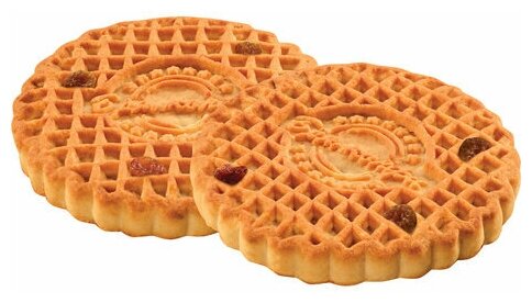 | Состав | Мука пшеничная, сахар-песок, жир специального назначения, изюм, вода питьевая, инвертный сироп (сахар-песок), регуляторы кислотности натрий двууглекислый (сода пищевая), кислота лимонная пищевая, молоко цельное сгущенное с сахаром, меланж яичный сухой, разрыхлитель соли углеаммонийные, соль поваренная пищевая, разрыхлитель натрий двууглекислый (сода пищевая), ароматизаторы "Масло сливочное", "Ванильный", идентичные натуральным. |