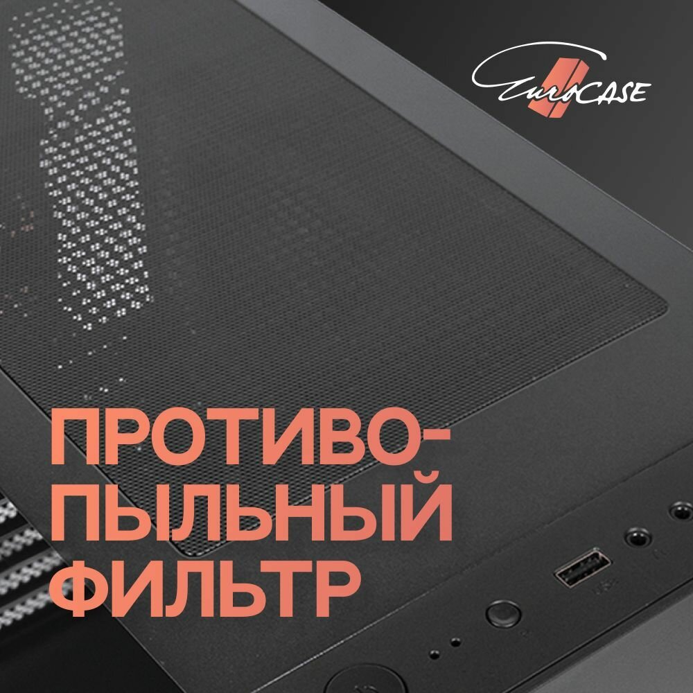 не плохой корпус, соьирать в нем достаточно удобно, наличие одной вертушки в комплекте, каленое стекло сбоку, теперь о минусах, а их тоже хватает, отсутствие аргб контроллера, тоесть подсветка есть, а если хочешь синхронизации, то будь добр покупай приблуду отдельно, это не добно, отверстие под забор воздуха не имеет вообще никакого пылевого фильтра, если у вас есть питомец, то капут, яб предпочел полное отсутствие ргб полсветки, отсутвию сетки на передней панели.