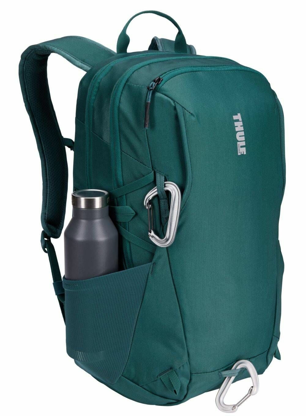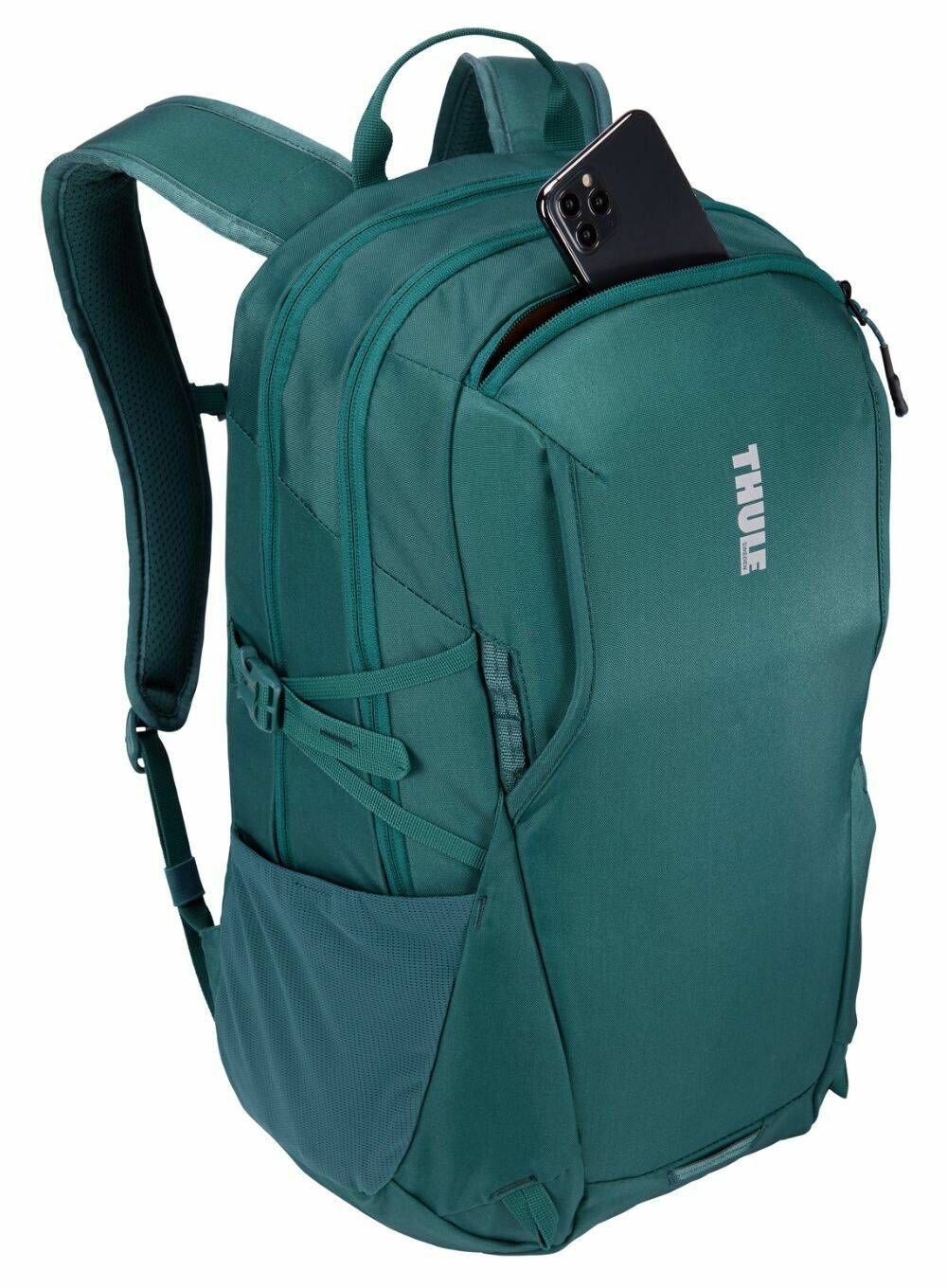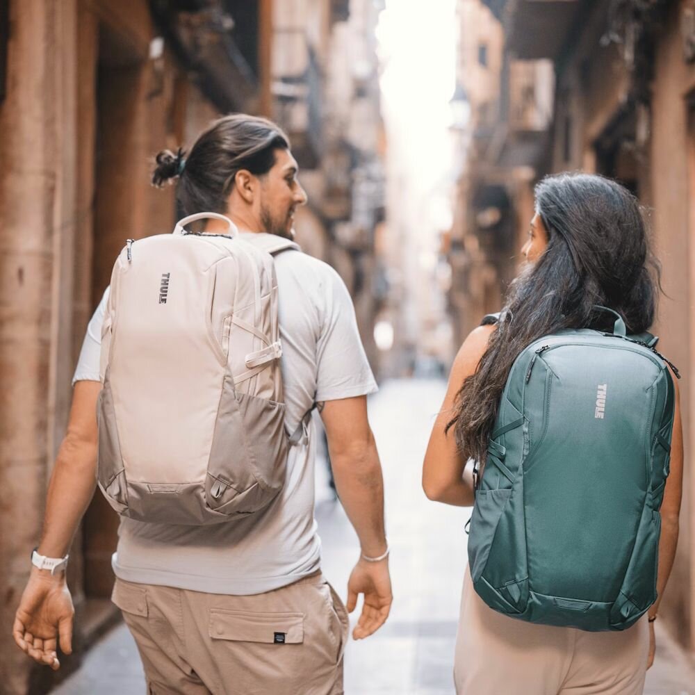Thule EnRoute Backpack 23L - универсальный рюкзак для активного отдыха с несколькими решениями для хранения. Отдельные приподнятые карманы для ноутбука с диагональю 15,6 дюйма и планшета с диагональю до 10,5 дюймов. Карман с мягкой подкладкой обеспечивает быстрый доступ и защищает телефон, солнцезащитные очки и другие ценные вещи. Организационная панель позволяет легко хранить мелкие аксессуары, ручки и ключи. Дополнительное отделение для хранения сменной одежды аксессуаров или других личных вещий имеет водонепроницаемый и непрозрачный карман на молнии из ТПУ для защиты содержимого. Сетчатые внешние боковые карманы растягиваются, чтобы вместить бутылку с водой, блок питания или зонтик. Точки крепления на передней панели позволяют легко прикрепить дополнительное снаряжение. Специальная панель для надежного крепления сумки к чемодану на колесиках помогает путешествовать с удобством. Грудная стяжка, мягкая задняя панель с каналом для воздушного потока и боковые компрессионные ремни для распределения нагрузки, что делает его более удобным для переноски.