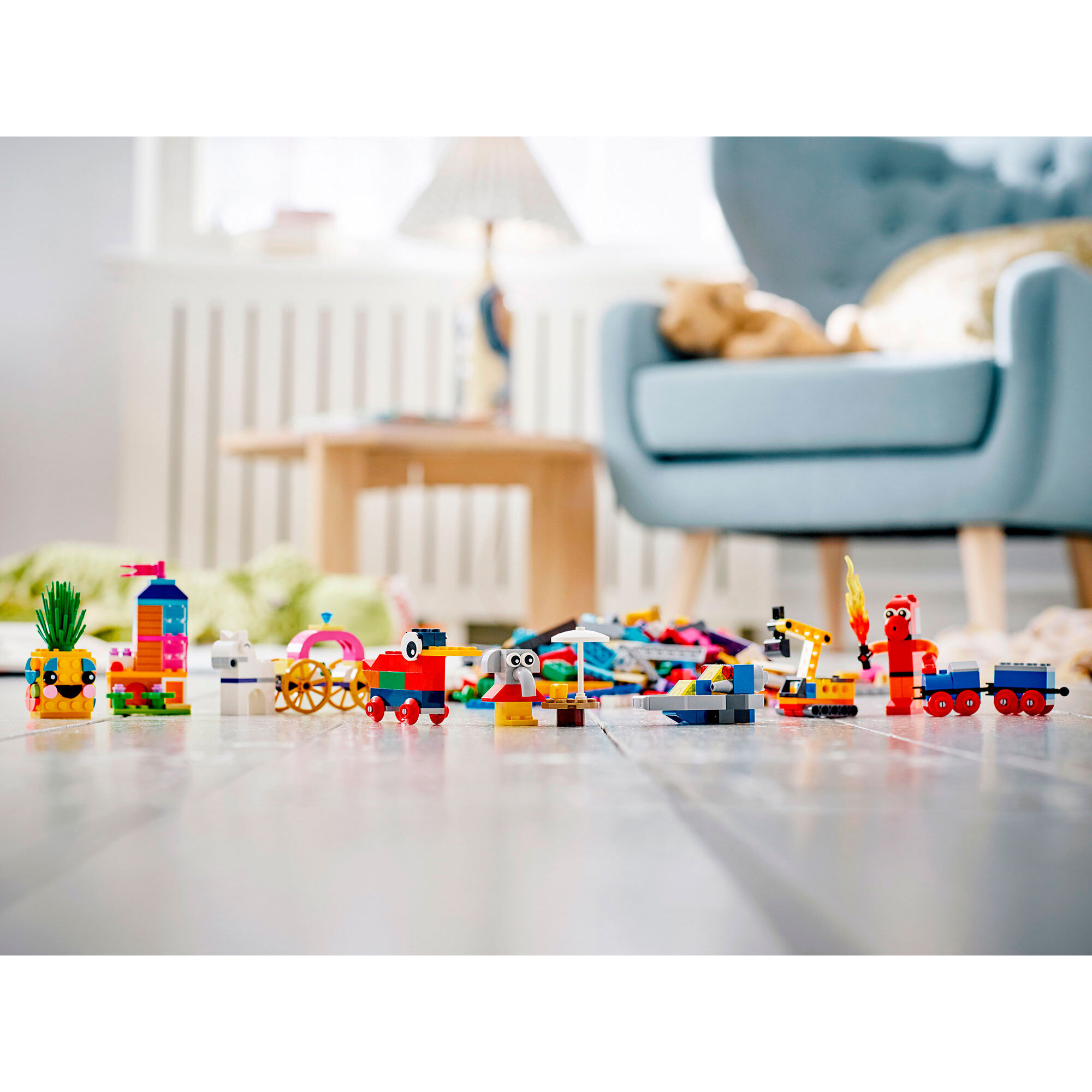 Конструктор Lego Classic 90 лет игры 11021 развивает творческое мышление, усидчивость и мелкую моторику. Выполнен из безопасных для здоровья материалов. Окунитесь в историю обучения в игре с набором «90 лет игры» Лего Классик. В него входит целая радуга разноцветных деталей LEGO и 15 миниатюрных моделей, воссоздающих популярные наборы LEGO разных лет. Дети, взрослые, бабушки и дедушки смогут насладиться веселой и ностальгической сборкой, воссоздавая культовые игрушки LEGO — от «Утки» 1932 года до подставки для карандашей «Ананас» 2020 года.
