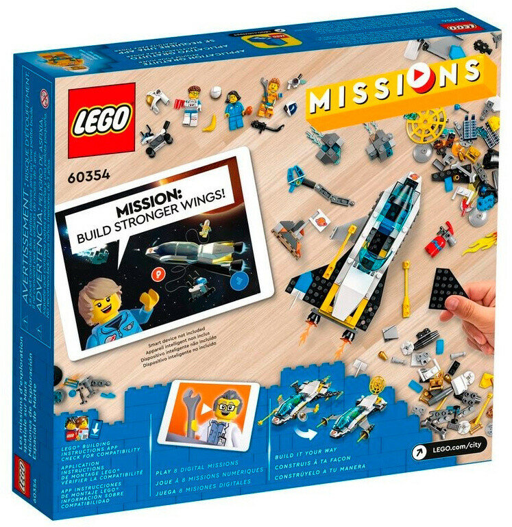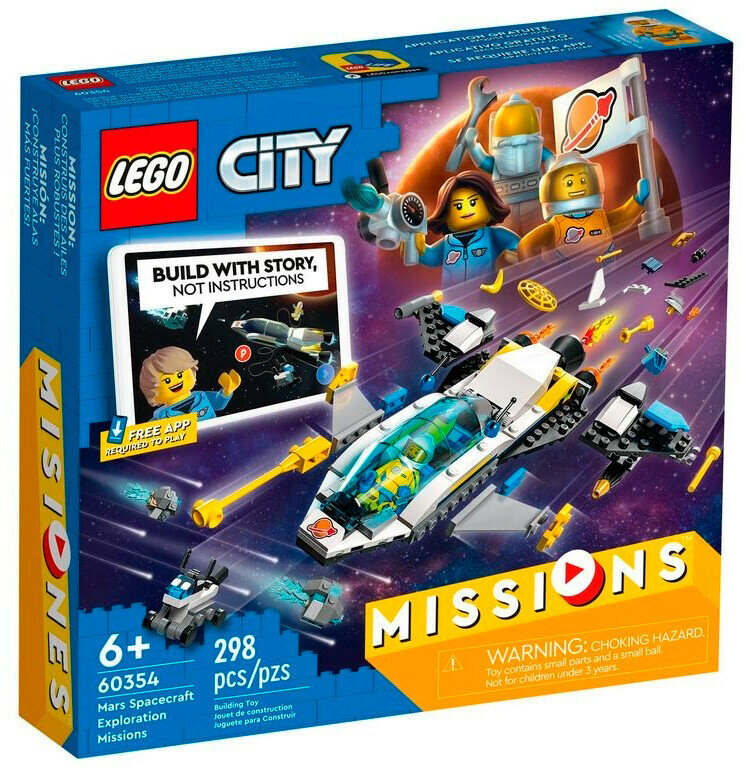 Конструктор Lego City Космическая миссия для исследования Марса 60354 развивает творческое мышление, усидчивость и мелкую моторику. Выполнен из безопасных для здоровья материалов. Вдохновите детей на новые измерения с помощью интерактивной игры, в которой они смогут стать звездами цифровых приключенческих историй. Увлекательные экранные задачи решаются с помощью правильных блоков LEGO. «Исследовательский полет на Марс» LEGO City (60354) — это набор игрушек, который включает в себя потрясающий космический корабль и квадроцикл для исследования планет, 3 мини-персонажа, робота-собаку и множество деталей LEGO, с помощью которых можно решать задачи по сборке забавных историй. Загрузите бесплатное приложение. Игровой набор LEGO City «Исследование Марса» подходит для детей в возрасте от 6 лет и требует наличия смартфона или планшета с загруженным бесплатным приложением LEGO Building Studies.