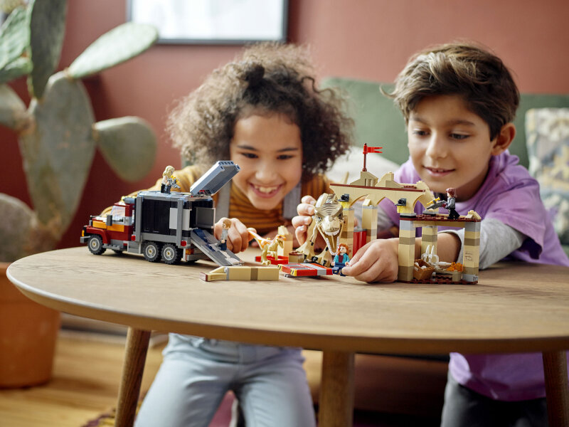 Конструктор Lego Jurassic World Побег атроцираптора и тираннозавра 76948 развивает творческое мышление, усидчивость и мелкую моторику. Выполнен из безопасных для здоровья материалов. Поклонники могут переосмыслить захватывающий боевик из фильма Мир Юрского периода: Доминион с этим набором игрушек T. rex & Atrociraptor Dinosaur Breakout (76948). Отличный сюрприз для детей в возрасте от 8 лет, задающих моду, включает в себя сборный рынок и игрушечный грузовик, а также фигурки атроцираптора и тираннозавра. На рынке есть корпус тираннозавра с функцией отрыва, а в грузовике есть место для 2 атроцирапторов