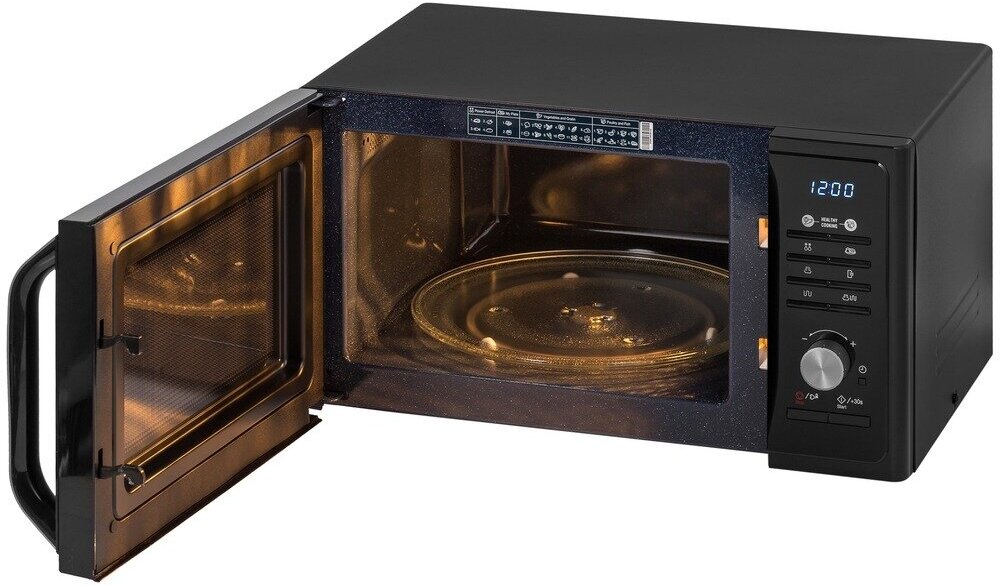Микроволновая печь Samsung MG23F301TAK/ BA с мощностью 800 Вт разогреет готовое блюдо, приготовит полуфабрикаты и разморозит запасы из морозильной камеры. Микроволновка Samsung MG23F301TAK/ BA - скорость и качество на Вашей кухни!.