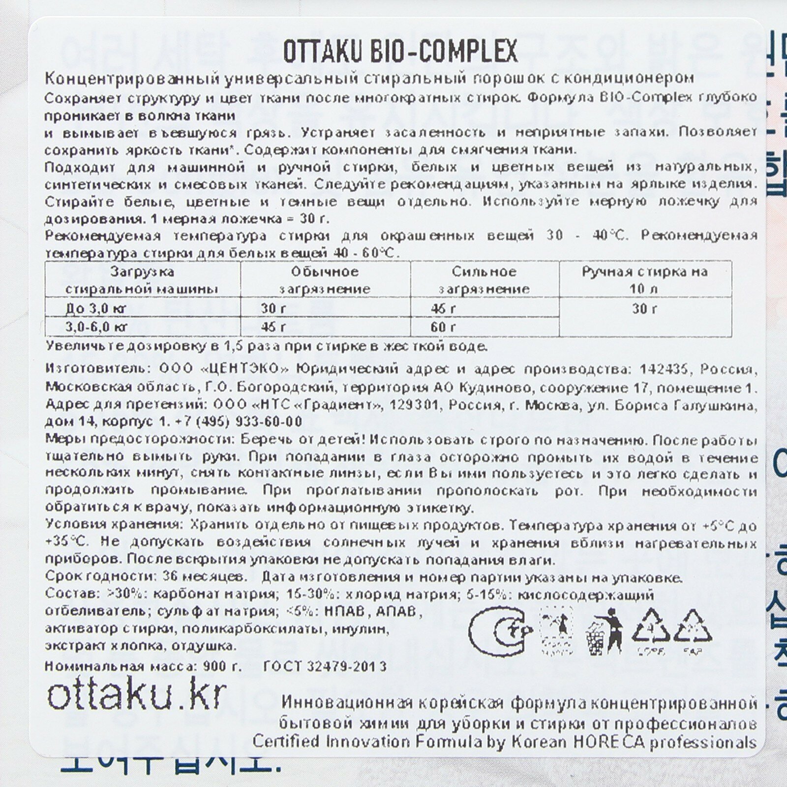 OTTAKU BIO-COMPLEX Концентрированный универсальный стиральный порошок с кондиционером 090 кг OT7701002