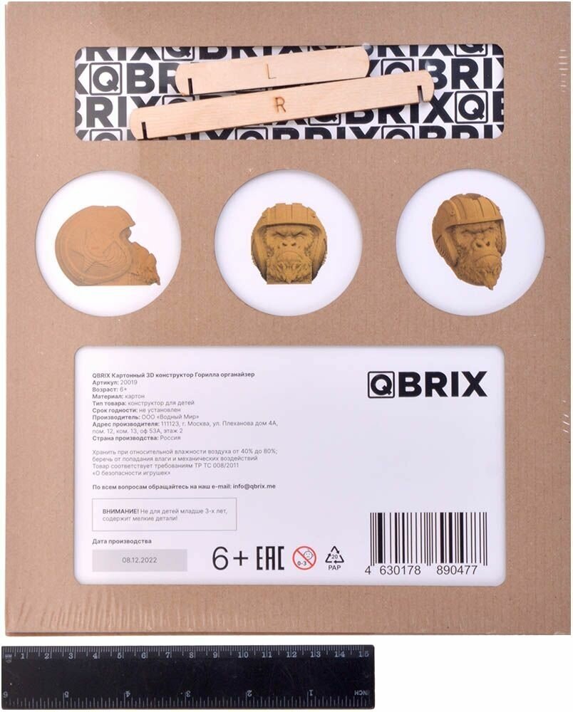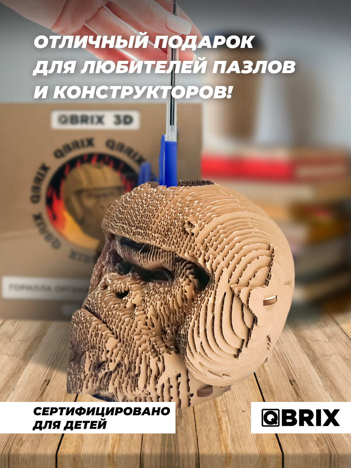 Картонный 3D-конструктор QBRIX. Горилла (органайзер) Картонный 3D-пазл-органайзер "Горилла"