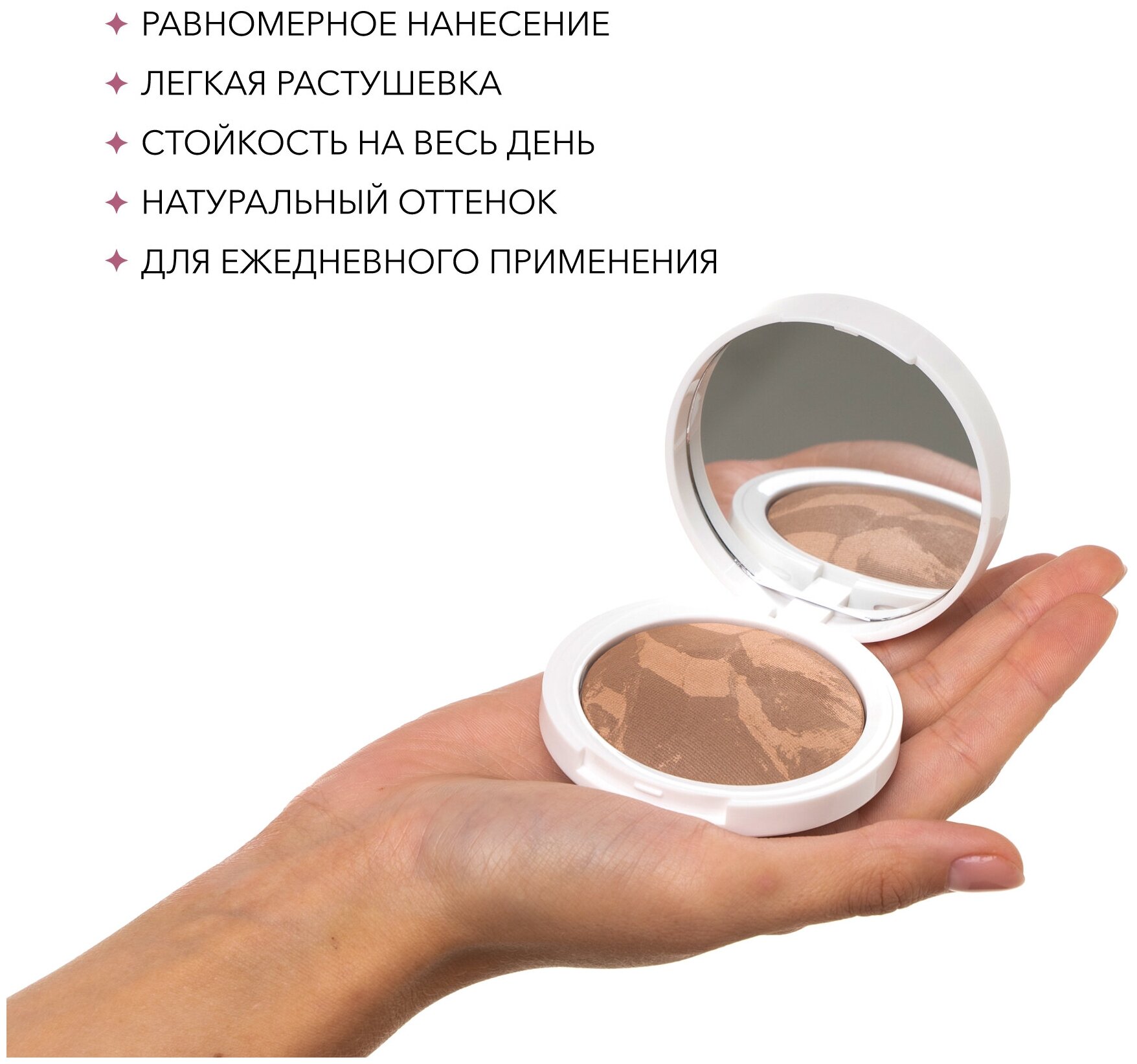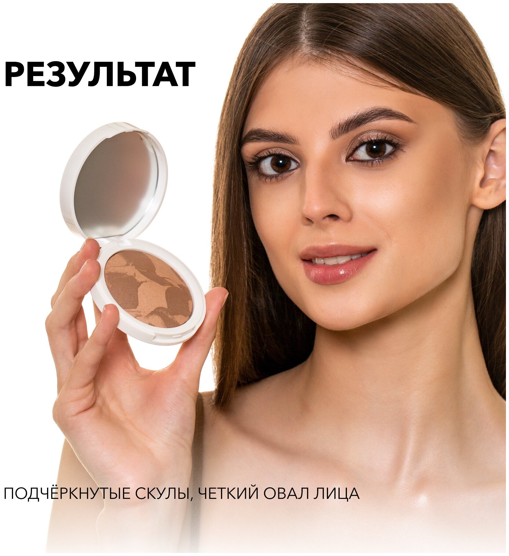 Запеченный скульптор создает естественный эффект затемнения и моделирования лица. Чувственно подчеркивает скулы, делает овал лица более выразительным. Шелковистая текстура достигается за счет особого микса пигмента и слюды. Скульптор однородно наносится и легко растушевывается, не оставляя пятен и полос. Не содержит тальк. Запеченный скульптор подходит для всех типов кожи — комбинированной, жирной, нормальной, проблемной и сухой.