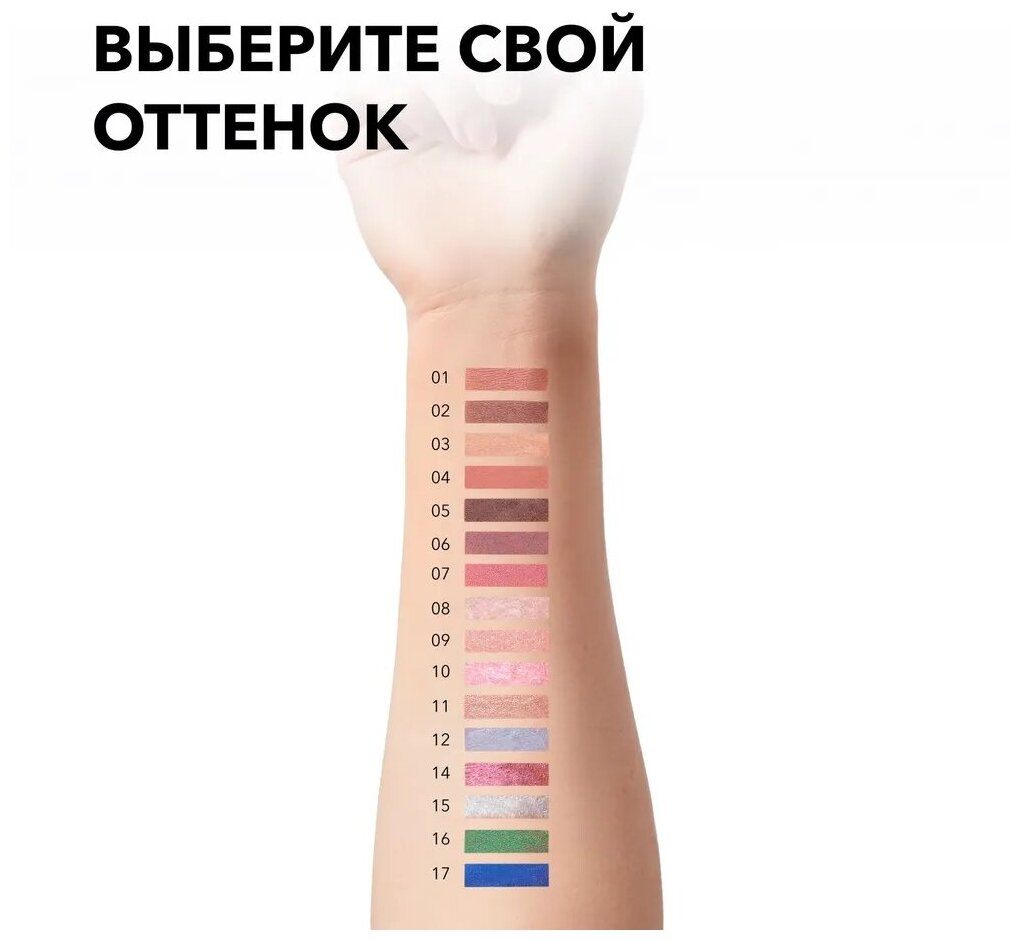 Кремовые тени для век — продукт для создания быстрого выразительного макияжа глаз. Благодаря мягкой пластичной текстуре и удобному бархатному аппликатору позволяют легко, равномерно наносить и растушевывать тени. Тени для макияжа глаз обладают легким охлаждающим эффектом и потрясающей стойкостью. Идеально подходят для создания как стильного повседневного, так и эффектного вечернего образа. Жидкие тени имеют тщательно продуманную цветовую гамму и сочетают в себе универсальность и неповторимость сложных оттенков.