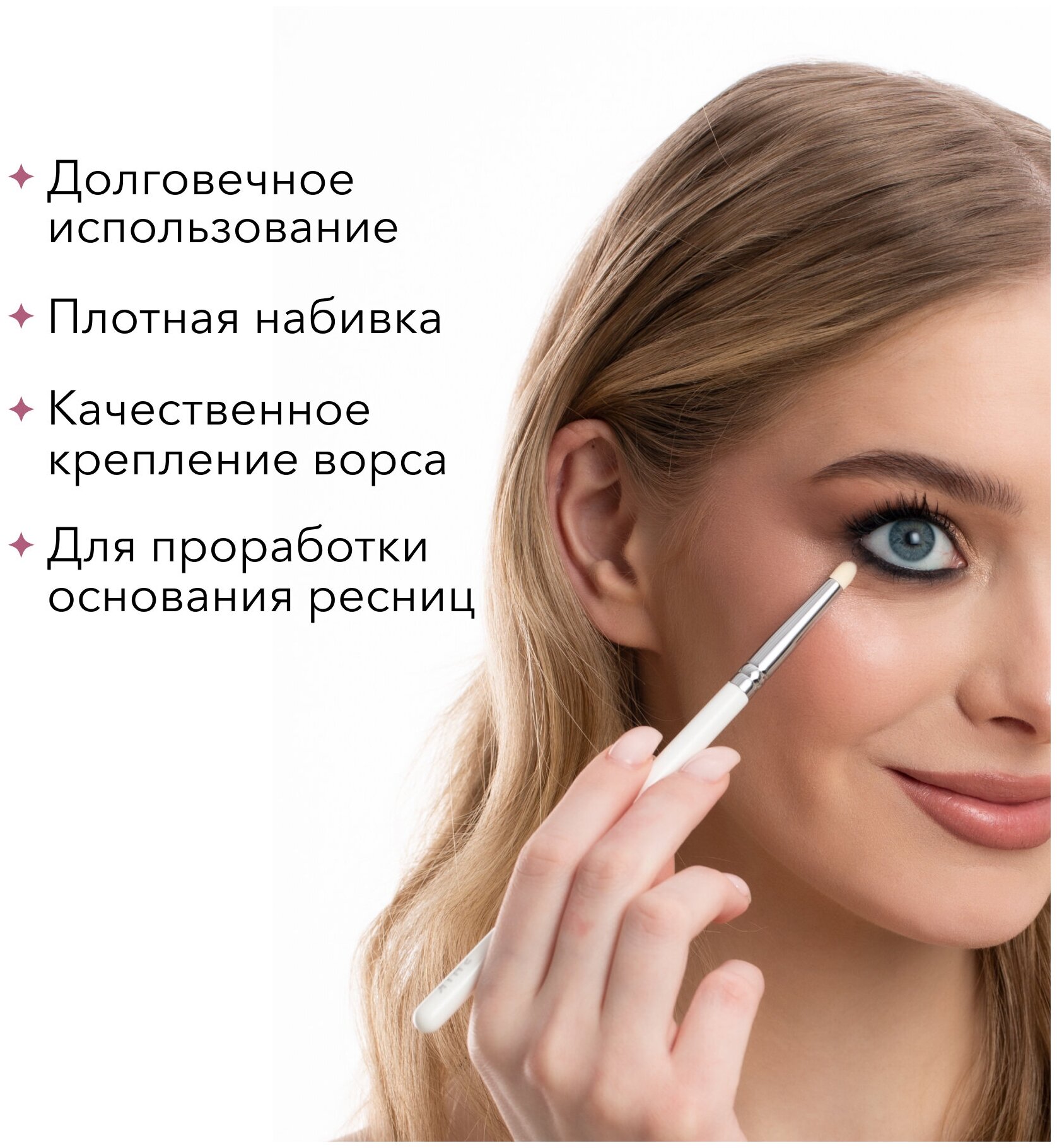 Кисть для глаз имеет заостренную форму и напоминает карандаш. Выполнена из мягкого, эластичного, гипоаллергенного материала — таклона. Деликатный и очень нежный к коже, не вызывает раздражение. Кисть- карандаш имеет стильный белый, качественный дизайн с серебряными деталями. Такой аксессуар прослужит долго. Кисть для нанесения теней работает с любыми текстурами. С ее помощью легко растушевать тени или карандаш по ресничному ряду или аккуратно расставить акценты. Кисть для теней имеет удобный кейс для хранения. Он защищает инструмент от повреждений и загрязнений. Для профессионального и домашнего использования. Длина: 17 см.