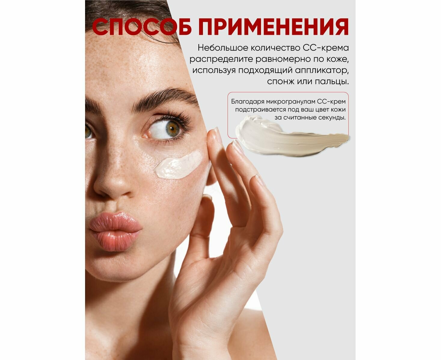 Корректирующий CC-крем для лица CC Cream Chameleon с невесомой текстурой и деликатным сиянием сочетает в себе уход за кожей и функцию make-up. СС-крем универсален в своём использовании: подходит для всех типов и цветов кожи, можно использовать в любое время кожи. СС-крем, подобно хамелеону, за считанные секунды подстраивается под любой цвет кожи благодаря микрогранулам в составе. Средство отлично маскирует покраснения, выравнивает тон кожи, глубоко увлажняет кожу в течение всего дня, дарит здоровое сияние и защищает кожу от негативного влияния окружающей среды и УФ-лучей (SPF 28 PA++). СС-крем обладает невесомой текстурой, не забивает поры на лице и не образует ощущение "маски" на лице.