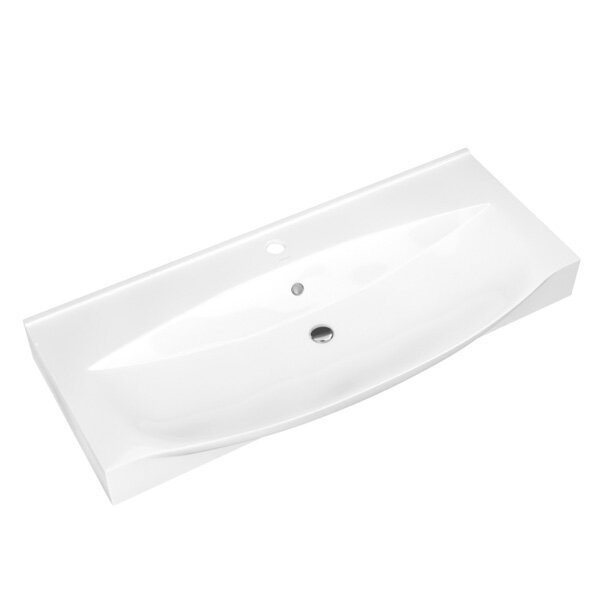 Раковина Kirovit из фаянса прямоугольной формы. Размер 105х48х26,5 см. 1 отверстие под смеситель.