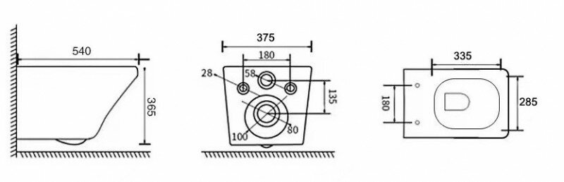 Подвесной унитаз Esbano с безободковой системой слива. Горизонтальный выпуск P-Trap. Диаметр выпуска 100мм. Межосевое крепление 180мм. Материал: фаянс. Сиденье: DUROPLAST с крышкой soft-close. Плавное опускание (микролифт), быстросъемное, металлические накладки, металлический крепеж на петлях