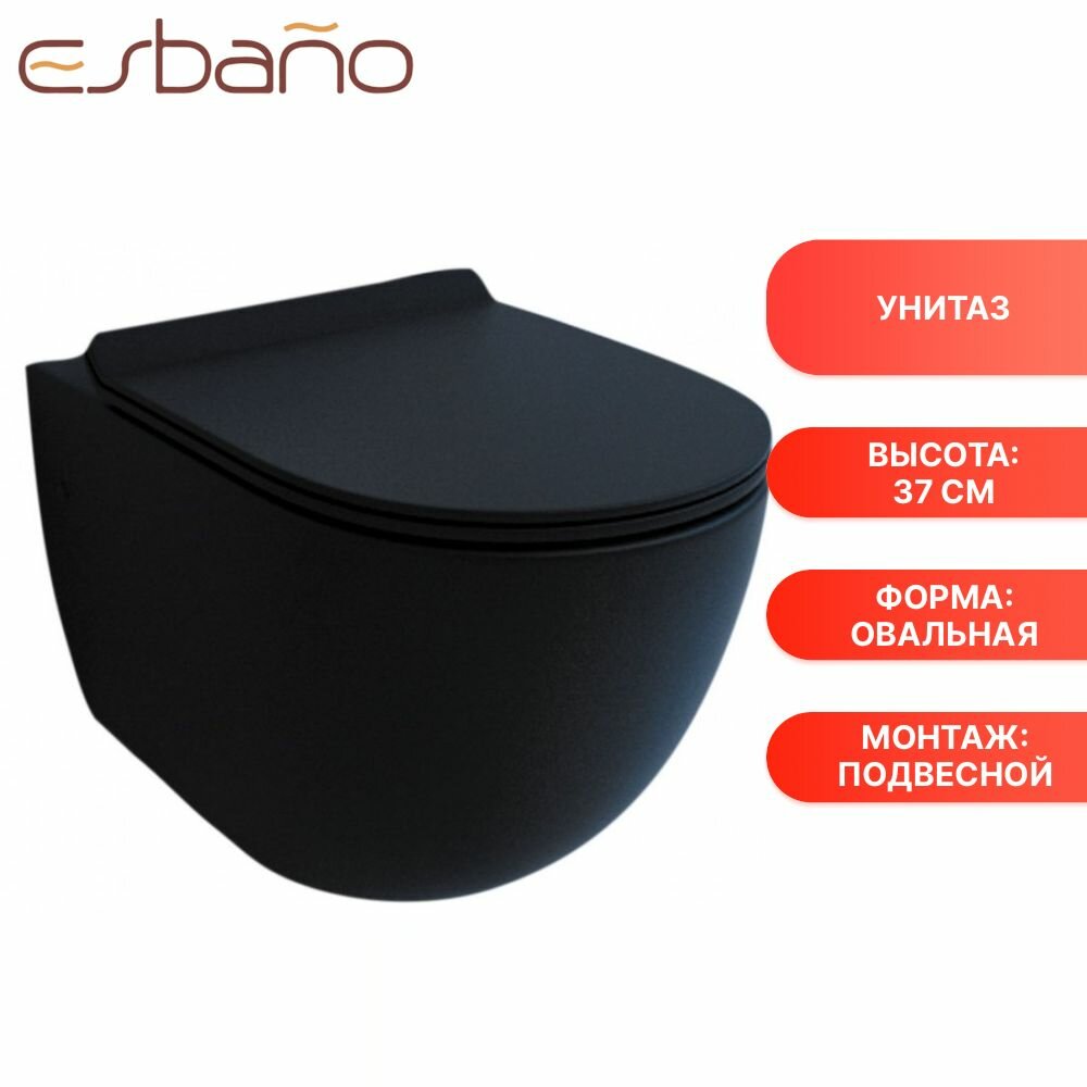 Унитаз подвесной Esbano безободковый с крышкой-сиденьем микролифт Fortex ESUPFORTBM