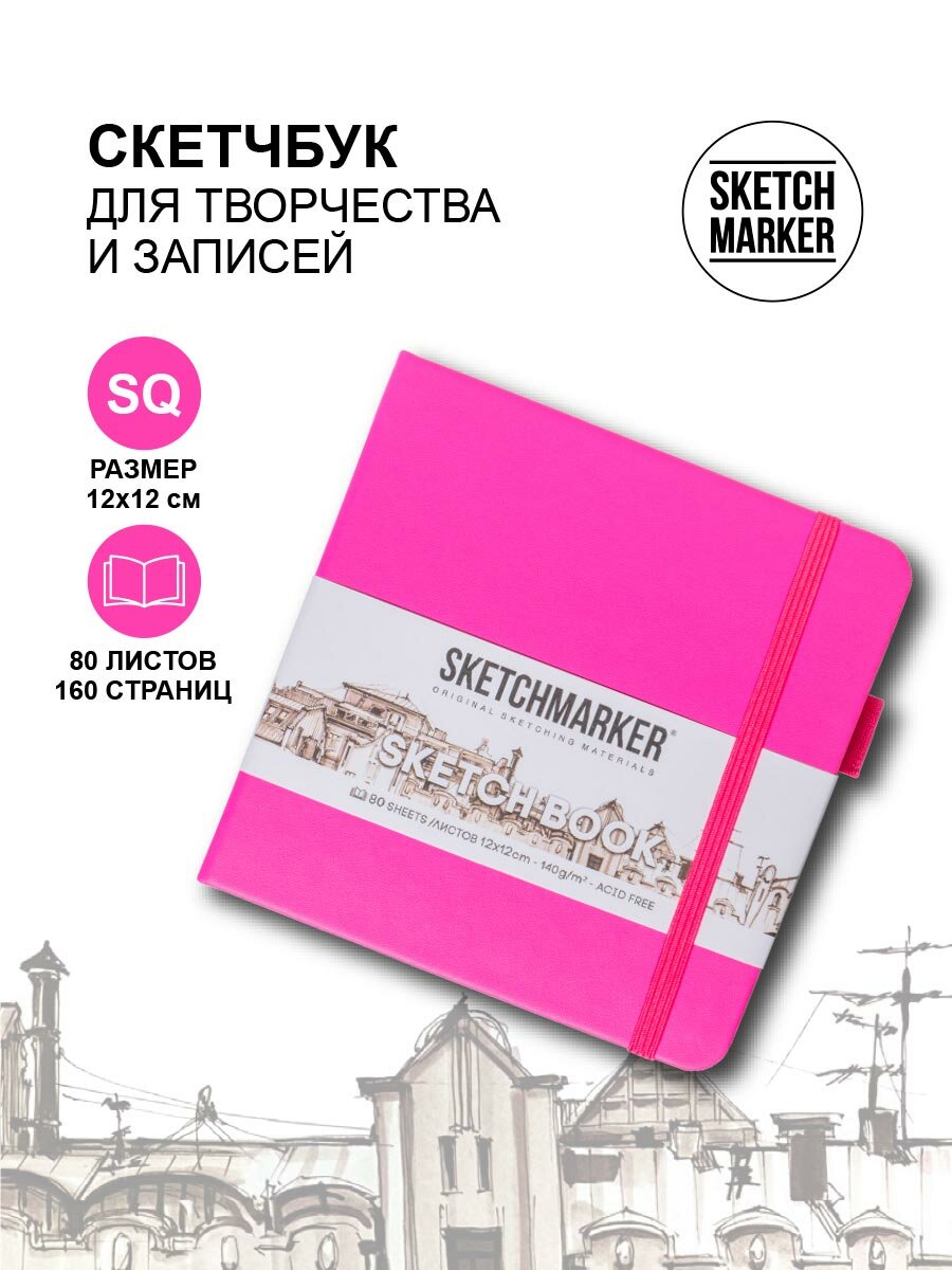 Блокнот для зарисовок Sketchmarker 12х12 см 80 л 140 г твердая обложка (2314502SM)