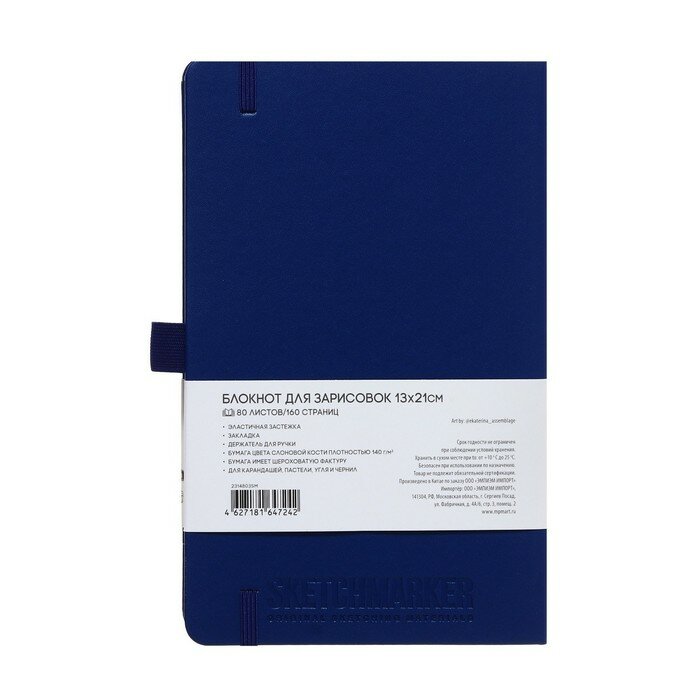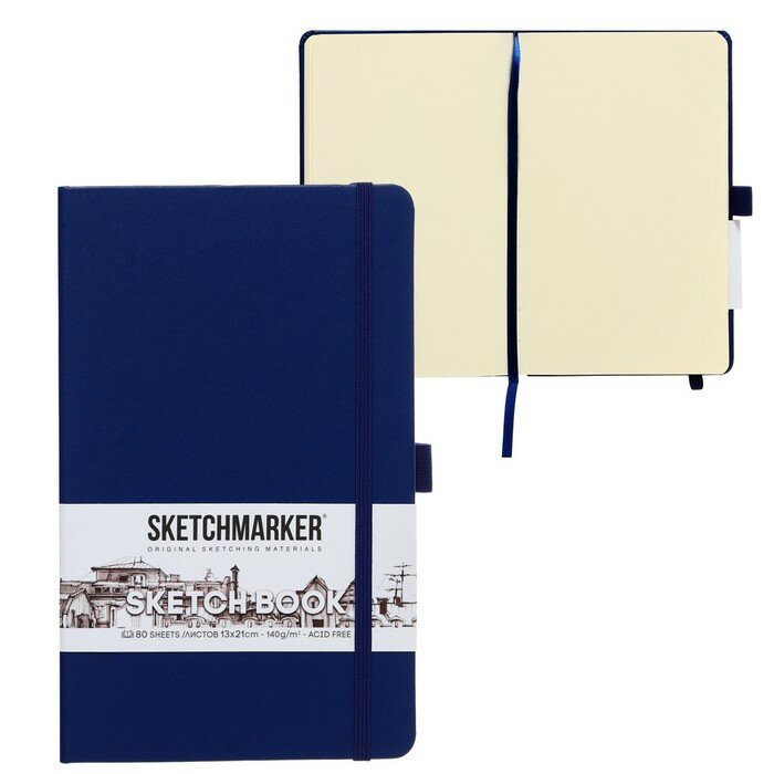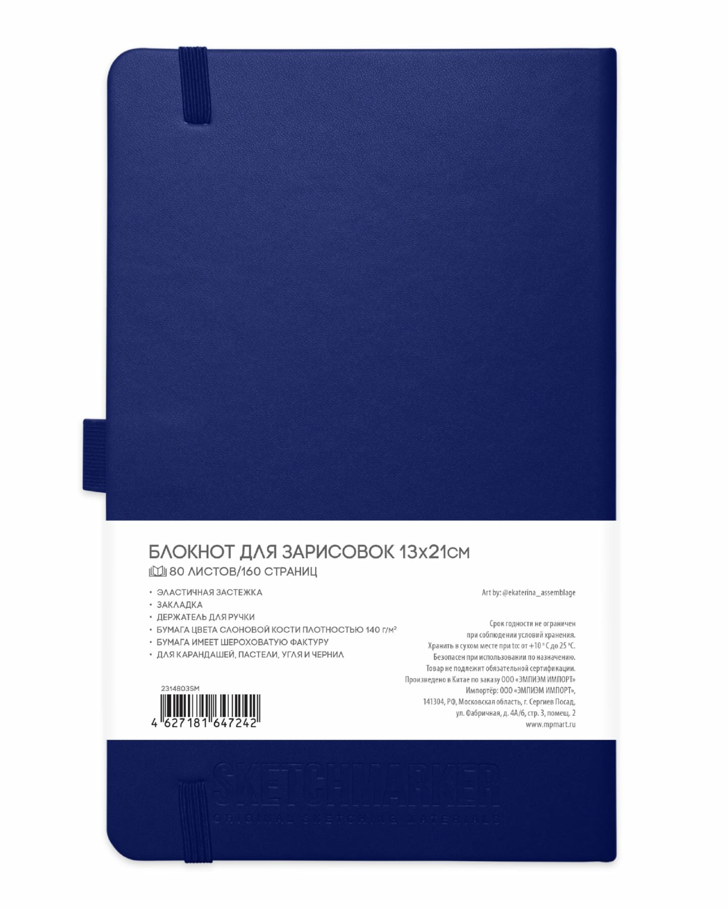 Блокнот для зарисовок Sketchmarker 13х21 см 80 л 140 г твердая обложка Королевский синий (2314803SM)