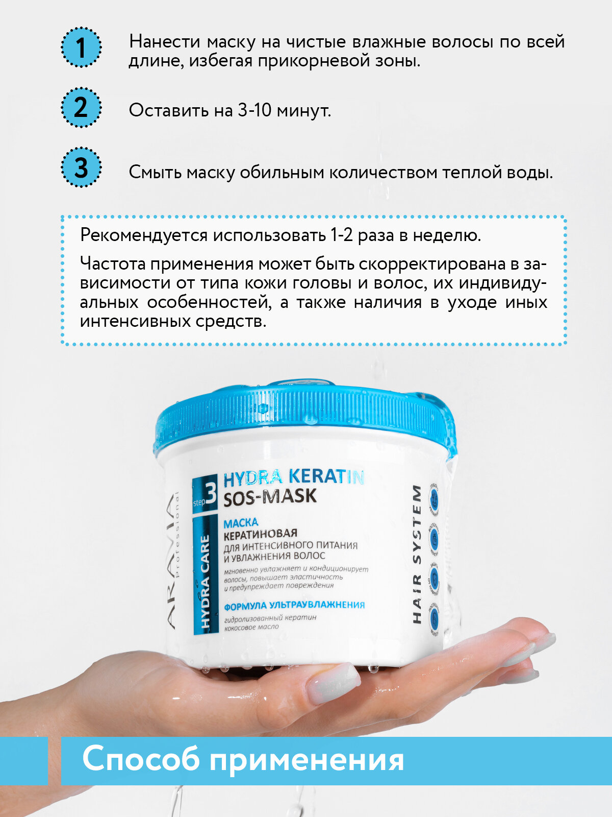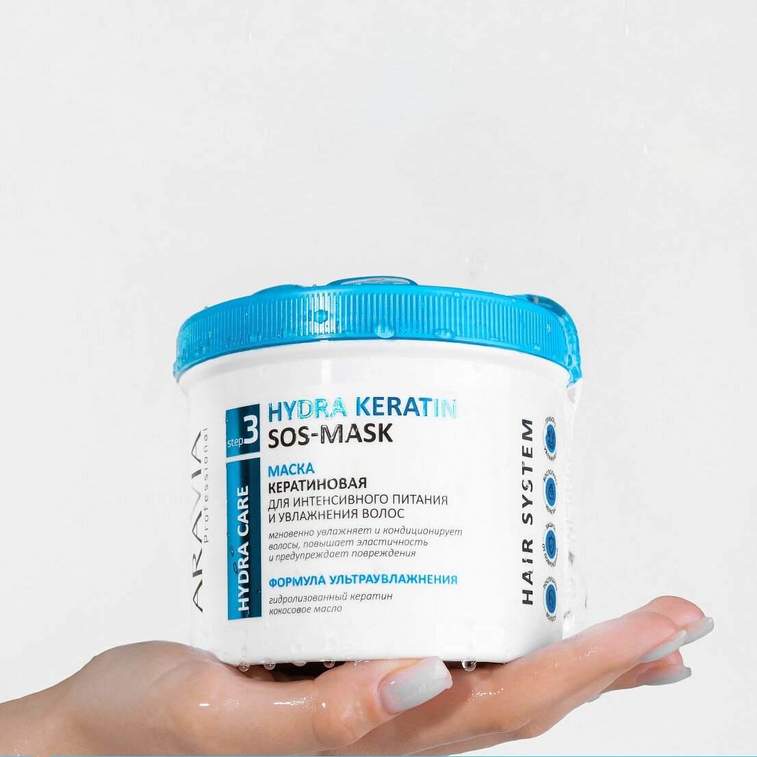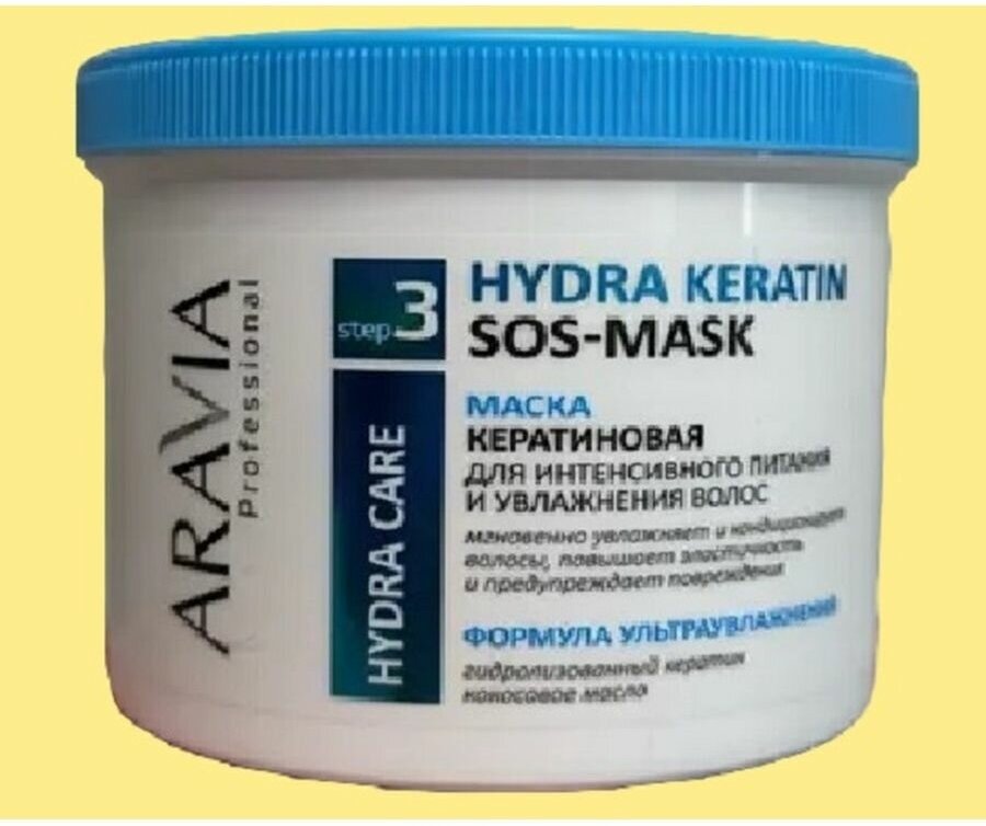 Маска кератиновая для интенсивного питания и увлажнения волос Hydra Keratin SOS-Mask 550 мл ARAVIA PROFESSIONAL (ЭХ99989439414)