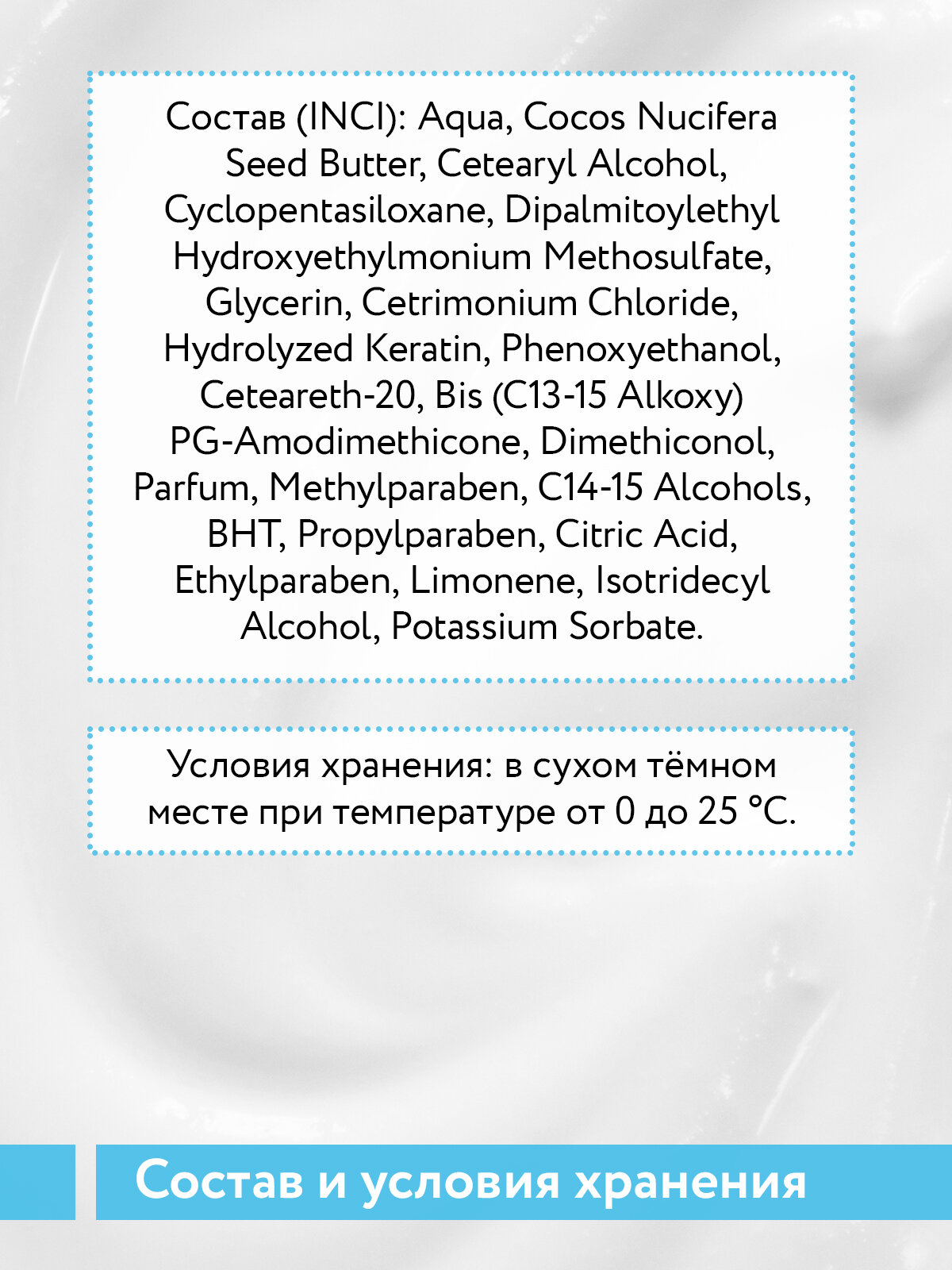 | Состав | вода, косметическая основа, гидролизованный кератин, кокосовое масло |