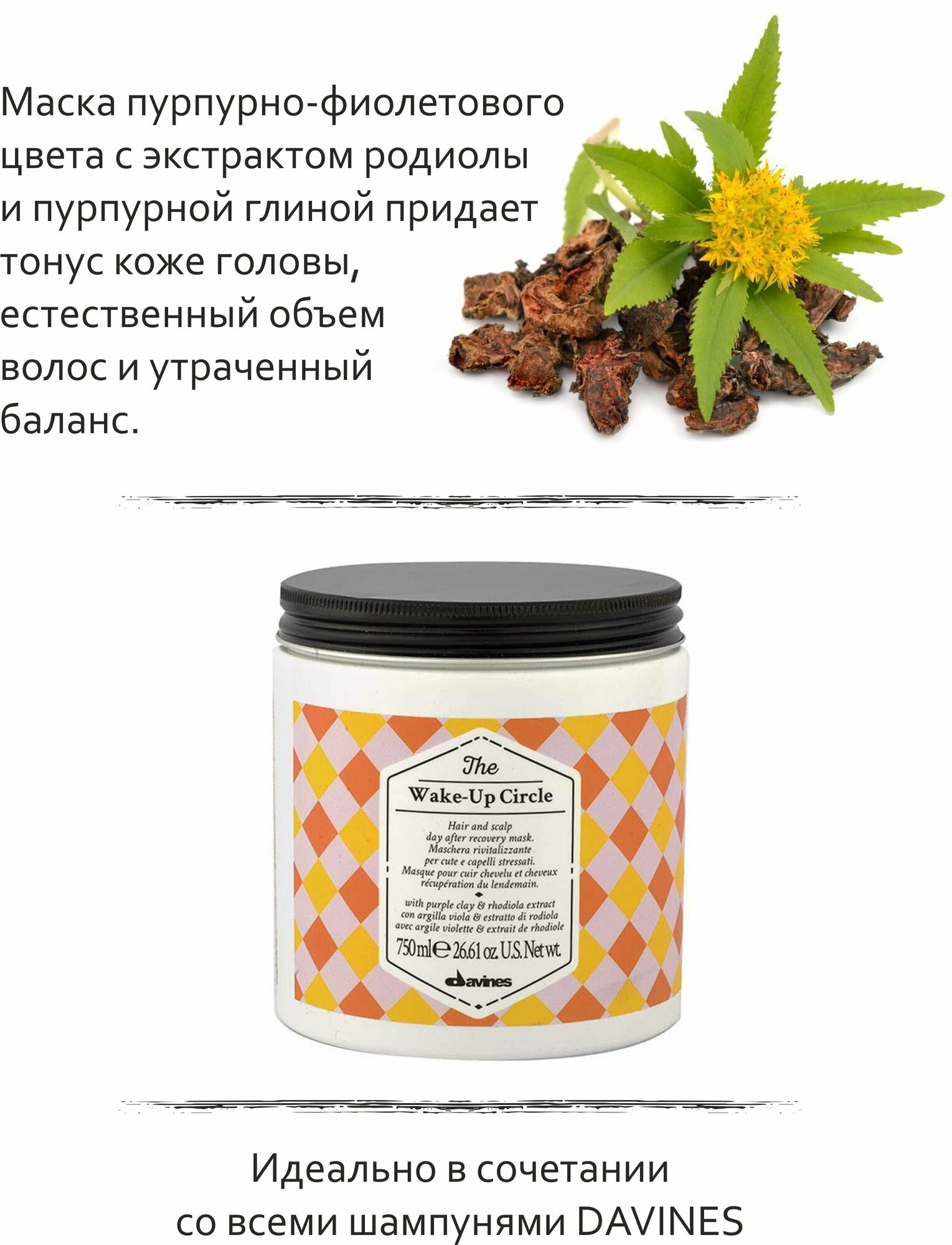 | Полное описание | Успокаивающая маска для волос и кожи головы The Wake Up Circle придает великолепный объем волосам и тонизирует кожу головы. Маска пурпурно-фиолетового цвета без сульфатов и парабенов придает тонус коже головы, естественный объем волос и утраченный баланс. идеально в сочетании со всеми шампунями Davines не содержит сульфатов и парабенов подходит для всех типов волос pH 4.3 |