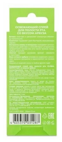 Освежающий спрей для полости рта Fresh со вкусом арбуза 15 мл Global White (ЭХ99989439512)