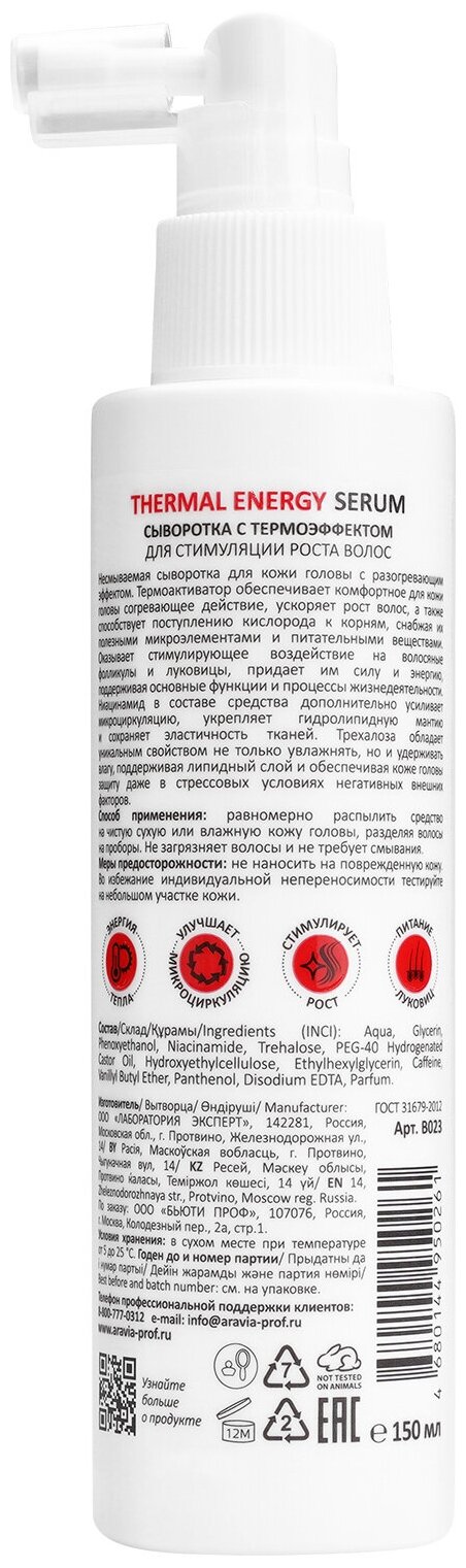 Сыворотка с термоэффектом для стимуляции роста волос Thermal Energy Serum 150 мл ARAVIA PROFESSIONAL (ЭХ99989439415)