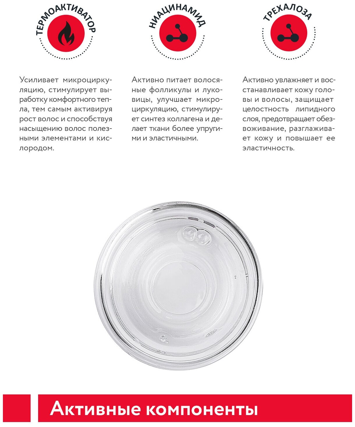 Несмываемая сыворотка для кожи головы с разогревающим эффектом обеспечивает комфортное для кожи головы согревающее действие, ускоряет рост волос, а также способствует поступлению кислорода к корням, снабжая их полезными микроэлементами и питательными веществами. Оказывает стимулирующее воздействие на волосяные фолликулы и луковицы, придает им силу и энергию, поддерживая основные функции и процессы жизнедеятельности. Усиливает микроциркуляцию, укрепляет гидролипидную мантию и сохраняет эластичность тканей. Трехалоза обладает уникальным свойством не только увлажнять, но и удерживать влагу, поддерживая липидный слой и обеспечивая коже головы защиту даже в стрессовых условиях негативных внешних факторов.