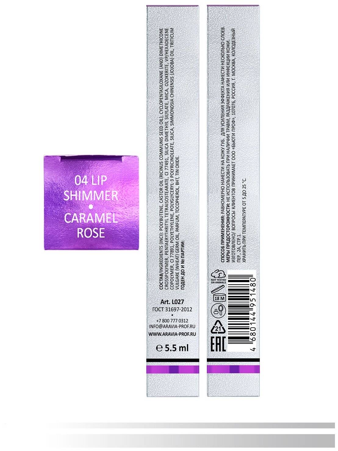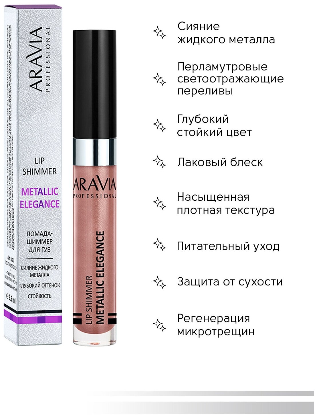 | Полное наименование | Помада Aravia Lip Shimmer Metallic Elegance 04 5,5 мл |