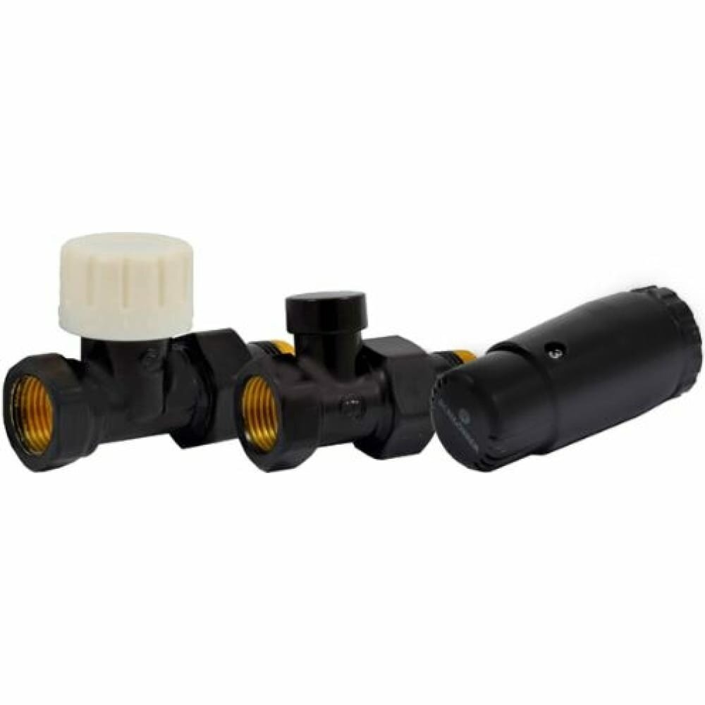 Комплект подключения Schlosser STANDARD MINI Прямой DN15 GZ1/2* GW1/2 с термоголовкой Ral 9005 matt (602200057 Ral 9005 matt)