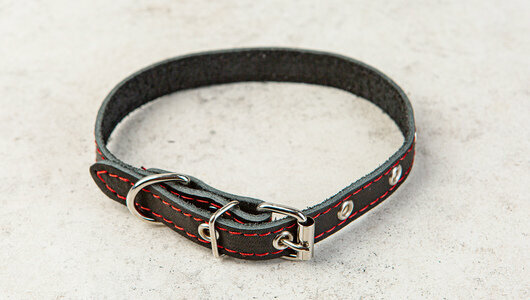 Серия амуниции "HOMEPET" представлена ошейниками и поводками из натуральной кожи с декоративной отстрочкой и надежной фурнитурой. Ошейник "HOMEPET" 15мм - однослойный кожаный ошейник шириной 15мм и длиной 28-38см из натуральной кожи черного цвета с декоративной отстрочкой прочной красной нитью. Отверстия для регулировки длины усилены металлическими блочками. Для крепления поводка установлено надежное никелированное полукольцо сварной конструкции. Ошейник "HOMEPET" предназначен для ежедневного выгула животного. Для защиты от непогоды и загрянений ошейник можно дополнительно обработать специальными средствами для ухода за натуральной кожей.