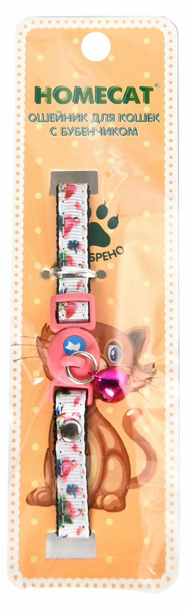 HOMECAT ошейник для кошек с бубенчиком фламинго (20-30 см.)